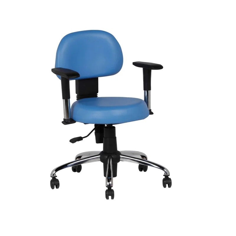 صندلی کامپیوتر با طراحی ساده و جمع و جور .پایه پنج پرفولادی با ابکاری کروم و چرخ های ژله ای.جنس روکش چرم پی یو. رویهی دسته ها پد نرم انتگرال