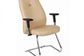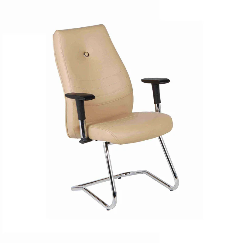 صندلی کنفرانسی با طراحی ساده و نشیمن راحت.پایه صندلی لوله ای فولادی با ابکاری کروم.دسته های صندلی فولادی با ابکاری کروم و رویهی پر نرم.روکش صندلی چرم دوخته شده پی یو