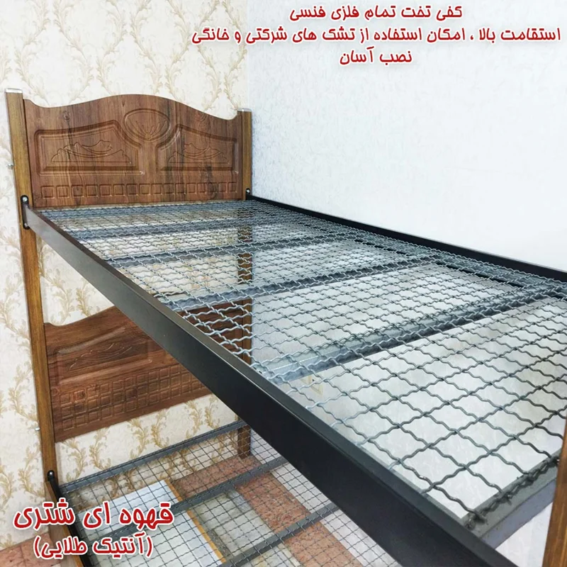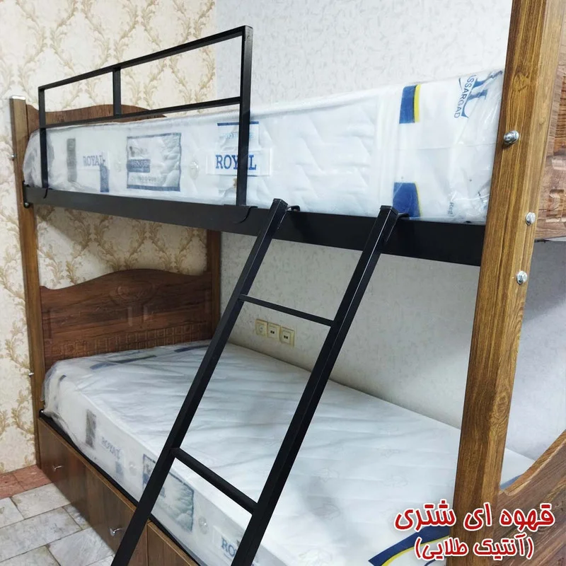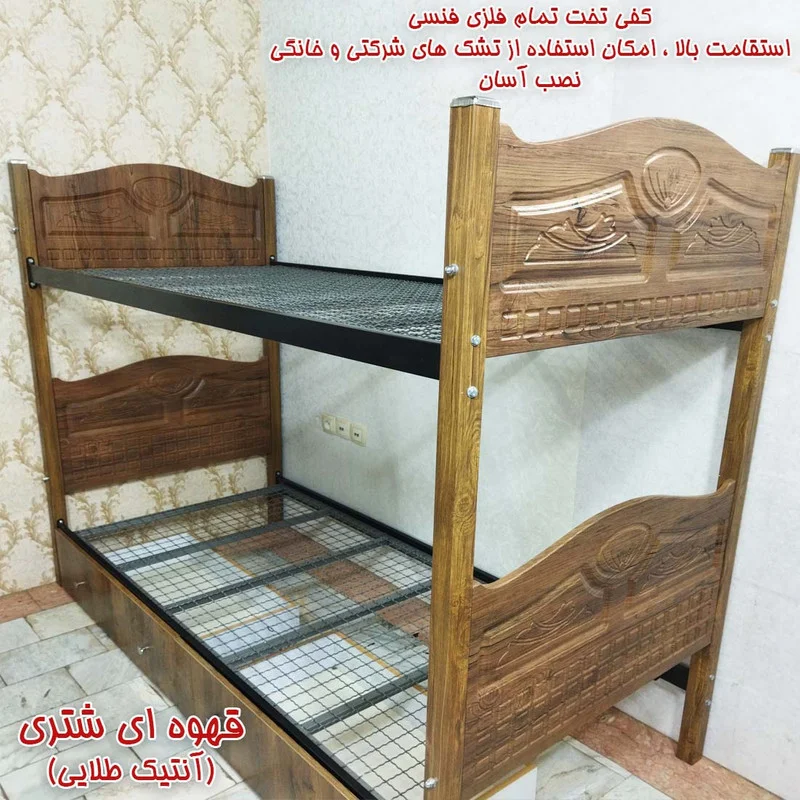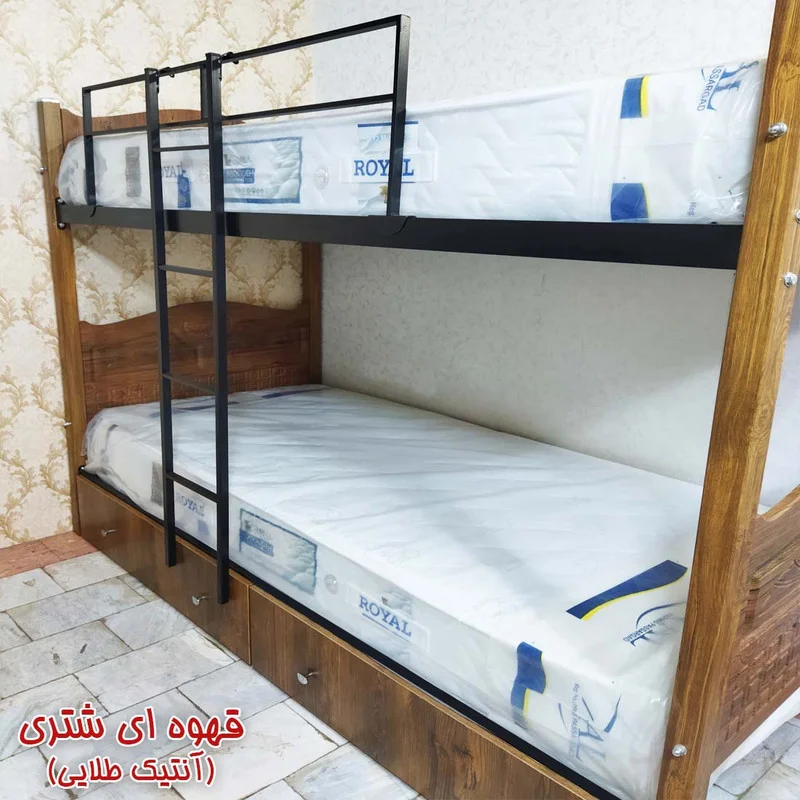 تختخواب دوطبقه مدل نگار با استفاده از ام دی اف و فلز یک محصول با استحکام و دوام بالا با قیمت مناسب را برای شما به ارمغان آورده است. این محصول با کفی تختخواب مدل فنسی عرضه میشود که دارای استقامت وزنی بالا ، نصب آسان و امکان استفاده از تشک های شرکتی و خانگی را دارا میباشد. حفاظ و نردبان محصول بصورت فلزی متحرک میباشد. کشوهای زیر تخت چرخدار با قابلیت قرارگیری از هر دو طرف بدون محدودیت میباشد. اتصالات محصول هم بصورت پیچ و مهره های آهنی میباشد که بسیار با دوام و محکم میباشد.