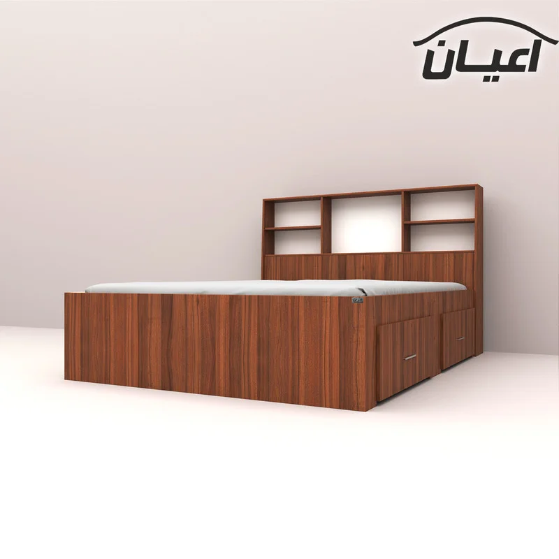 تخت دونفره اعیان.جنس ملامینه.سطح ضدخش.طراحی ساده و کاربردی.وزن متناسب با ابعاد.تحمل وزن متناسب با ابعاد و به صورت استاندارد.در رنگ های متنوع.بسته بندی با لوگو و برند اعیان.دو کشو باز شو و چرخدار می باشد.