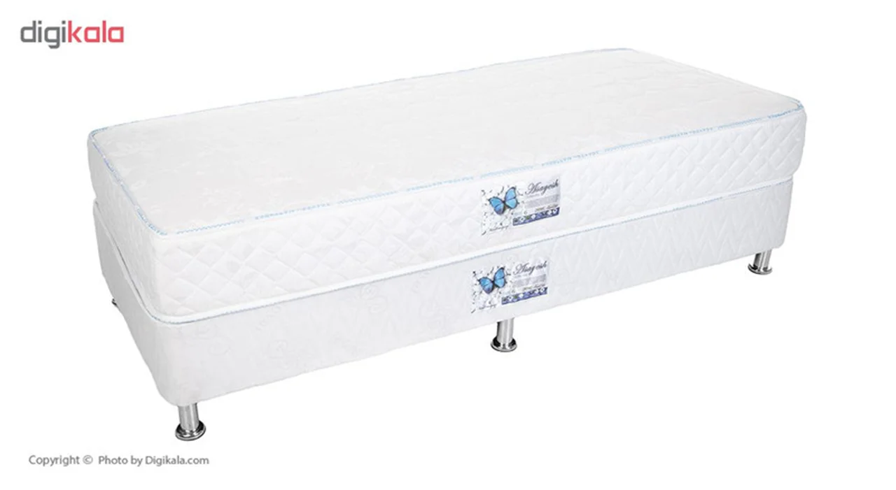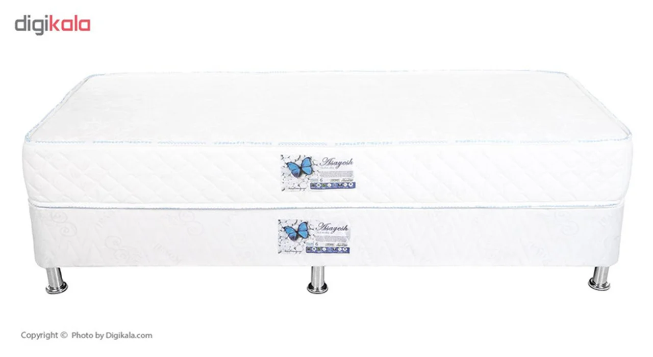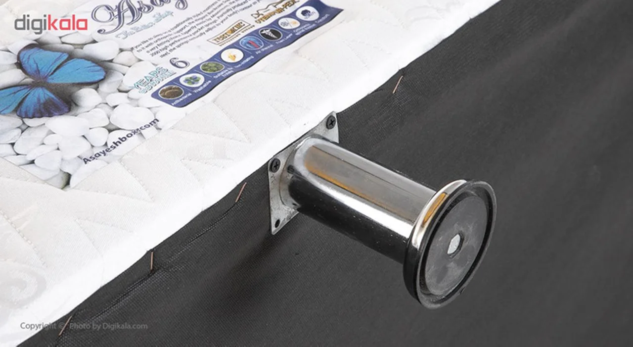 اگر قصد دارید از یک تخت استاندارد، ساده و مستحکم برای اتاق خواب خود استفاده کنید محصول فوق انتخاب مناسبی خواهد بود. در طراحی این تخت سعی شده تا محصول بسیار کاربردی و مینیمال باشد. این موضوع باعث شده تا این تخت در مقایسه با تختهای معمولی وزن کمتری داشته باشد، فضای کمی اشغال کند و کاربر برای جابهجایی آن با مشکل مواجه نشود. این محصول در بازار با نام باکس نیز شناخته میشود و یکی از محصولات شرکت شناختهشدهی آسایش باکس است. این شرکت محصولات متنوعی را به بازار عرضه میکند و فعالیت اصلی خود را روی تولید انواع تختها و تشکها متمرکز کرده است. استحکام بالای این محصول به لطف فریم فلزی بوده که در ساخت آن مورد استفاده قرار گرفته است. در این فریم پروفیلهای آهنی با کمک جوش Co2 به یکدیگر متصل شدهاند و ساختاری یکپارچه را شکل دادهاند. فلزی بودن فریم این تخت مزیت دیگری نیز برای آن به همراه داشته است. در این تخت برخلاف بسیاری از تختهای چوبی در اثر جابهجا شدن کاربر، صدای تخت شنیده نمیشود. تختهای که در بخش بالایی تخت قرار گرفته نیز از جنس نئوپان بوده و طراحی مناسب آن بستری مناسب برای قرارگیری تشک و تقسیم فشار وزن فراهم کرده است. از دیگر مزایای این مجموعه میتوان به وجود 6 پایهی فلزی آن اشاره کرد. در برخی از تختها تعداد پایهها 4 عدد بوده که فشار بیشتری را به سطح زیرین وارد میکنند اما در این محصول با وجود 6 پایه تقسیم فشار به شکل بهتری انجام خواهد شد. این تخت ابعادی برابر 200 × 90 سانتیمتری داشته و سایزی استاندارد برای تختهای یکنفره به حساب میآید. شرکت آسایش باکس ظرفیت وزنی قابل تحمل این محصول را 90 کیلوگرم اعلام کرده است. به همراه این محصول یک تشک طبی نیز عرضه شده است. این تشک به صورت تمام طبی طراحی شده است. تشکهای تمام طبی ساختاری با انعطافپذیری کم دارند اما میتوانند برای افرادی که از کمردرد رنج میبرند بسیار مفید باشند. این تشک دارای خاصیت آنتی باکتریال بوده و مواد به کار رفته در ساخت آن مانع از بروز حساسیت در فرد میشوند. شرکت آسایش باکس برای دوام بیشتر و بهتر پارچهی روی تشک از پارچهی ژاکارد استفاده کرده است که مقاومت بالایی دربرابر سایش و چروک شدن دارد.