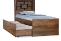 تخت خواب یکنفره میزبان یعنی تخت بالا از یک تخت عرض 90 با طول 200 سانتی متر و مهمان از یک کشو عرض 80 با طول 180 سانتی متر میباشد که کشو میزبان قابلیت اجرا در دو سمت تخت را دارد. از ساختاری محکم، طراحی ساده و مفید بهره می برد که این طراحی مفید و کمجا می تواند در کمترین فضا، امکانات مناسبی را خلق کند ، کف کشو چوبیست و فقط روی سرامیک چرخ ها به راحتی حرکت میکند . در تاج تخت چراغ خواب جهت مطالعه قرار دارد و اطراف تاج تخت حالت دکوری دارد . تخت خواب میزبان و مهمان پیشنهاد خوبی برای کسانی است که فضای کمی را برای استفاده از تخت خواب دارند و مورد استفاده کسانی که می خواهند یک سمت تخت خواب خود را به دیوار تکیه دهند میباشد.جنس تخت نئوپان یا همان ورق ملامینه ضد خش یا همون لترون میباشد .کفی تخت ورق نئوپان است. کشو مهمان چرخ دارد و روی سرامیک قابل حرکت میباشد . تخت فاقد تشک فاقد روتختی و فاقد بالشت میباشد و باید بصورت جداگانه جهت خرید تشک در سایز استاندارد اعلام شده اقدام نمایید . 200 در 90 برای تخت بالا و 80 در 180 برای کشو پایین و ارتفاع کناره تشک بیشتر از 20 سانت نباشد . کشو مهمان قابلیت قرار دادن هم در سمت چپ تخت و هم سمت راست دارد . تحت بدون هیچ وسیله دکوری ارسال میشود .