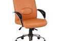 صندلی اداری با طراحی مدرن و ارگونومیک. پایه پنج پر فولادی ابکاری شده و چرخ های ژله ای بدون صدا.مکانیزم صندلی دو دسته کلاجی با امکان قفل شدن در هر حالتی.روکش صندلی چرم دوخته شده پلی اورتان بدون امکان پوست پوست شدن. جک گازی 10 سانتی متری. دسته های فولادی با ابکاری کروم با رویه ی پد نرم انتگرال