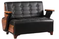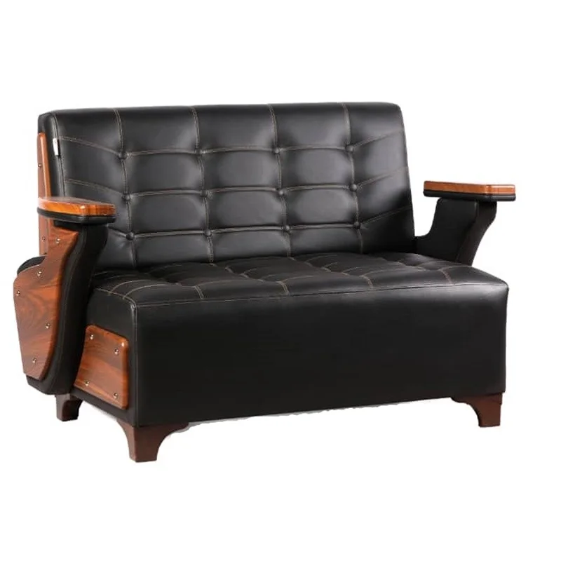 مبل دو نفره خلبانی. پایه مبل چوبی . دسته های مبل چوبی با رویه ی وکیوم . روکش مبل چرم پلی اورتان