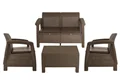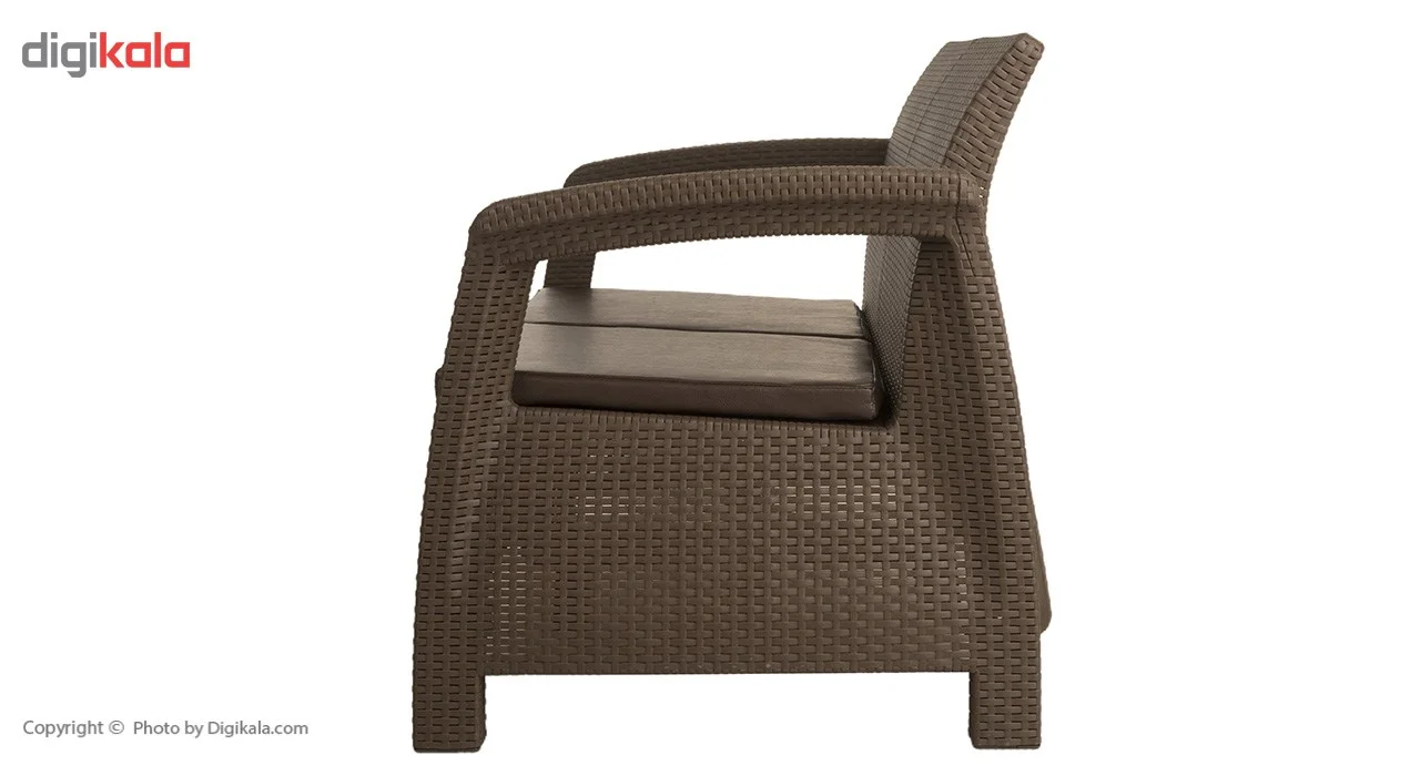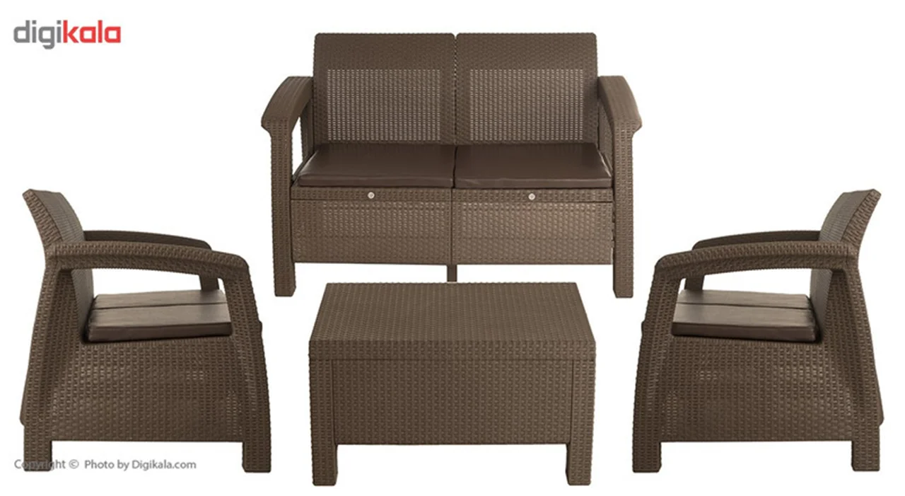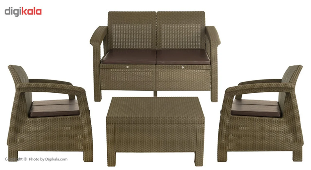 - ست مبل ۴ تکه ۴ نفره - شامل: - یک میل دونفره: - ابعاد: طول ۱۲۸، عرض ۶۵، ارتفاع ۷۹ سانتیمتر - ارتفاع نشیمن: ۴۳ سانتیمتر - ابعاد نشیمن: طول ۱۰۸ و عرض ۵۲ سانتیمتر - ارتفاع پشتی ۴۷ سانتیمتر - دارای دو عدد تشک - دو عدد مبل یکنفره: - طول ۷۵، عمیق ۷۰ و ارتفاع ۸۰ سانتیمتر - دارای دو عدد تشک - دارای یک میز جلومبلی: - ابعاد: طول ۷۷، عرض ۵۰ و ارتفاع ۴۲ سانتیمتر - ابعاد هر تشک: ۵۰ × ۵۰ سانتیمتر - مبلمان ساخته شده از پلاستیک بادوام - مناسب برای فضای باز، حیاط و استخر - مقاوم در برابر رطوبت - ضدآب - قابلیت اسمبل شدن - دارای راهنمای نصب