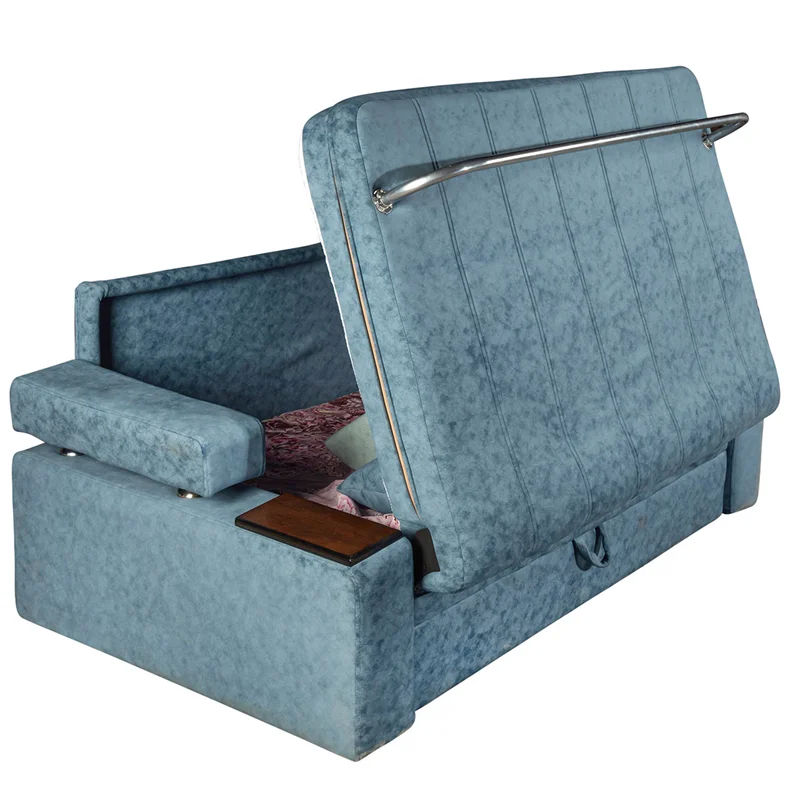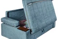 در قسمت کفی این محصول محفظهای عریض و جادار برای قرار دادن لوازم ضروری خواب تعبیه شده است که آن را در قیاس با سایر مدلهای مرسوم متمایز میکند. عرضِ تخت، ۱۴۰ سانتیمتر و طولش ۲۰۰ سانتیمتر است، بنابراین بهراحتی این مبل ظرفیت نشیمنِ سهنفره و تختِ دو نفره را داراست. دستههای این مدل مزین به عسلی چشمنواز و عریضی است که میتوان از آن برای قراردادن وسائل پذیرایی استفاده کرد.