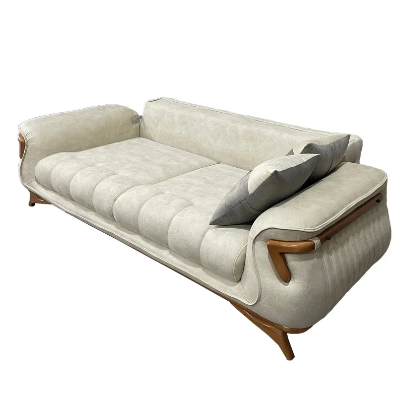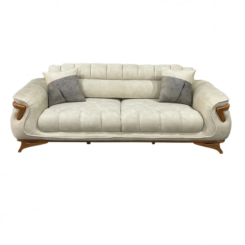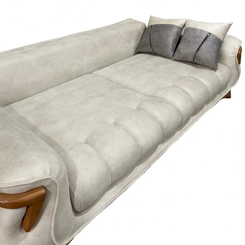 در معرفی مدل جذاب و به روز ویولت که با پارچه هانزو خارجی کار شده است و دارای ترکیب رنگ کامل میباشد این نکته را در نظر داشته باشید که انتخاب رنگ شما برای غالب قسمت مبل در تصویر اجرا خواهد شد یعنی تمام قسمت کاناپه ها و بیرون تک نفره ها. داخل تک نفره ها بصورت پیش فرض رنگ طوسی میباشد و در صورت انتخاب رنگ طوسی داخل تکی ها کرم کار خواهد شد. مدل زیبای ویولت دارای پایه و نمای زیبا از جنس چوب راش میباشد که علاوه بر رنگ پذیری عالی بسیار محکم میباشد. نشیمن مبل از جنس اسفنج 35 کیلویی یورولوکس میباشد که عمر بسیار بالایی دارد. تمام مراحل ساخت این محصول توسط کارشناسان کارخانه مورد نظارت قرار میگیرد تا محصولی بدون ایراد به دست خریداران عزیز برسد. ویولت سرشار از زیبایی ظرافت و حس خوب میباشد.
