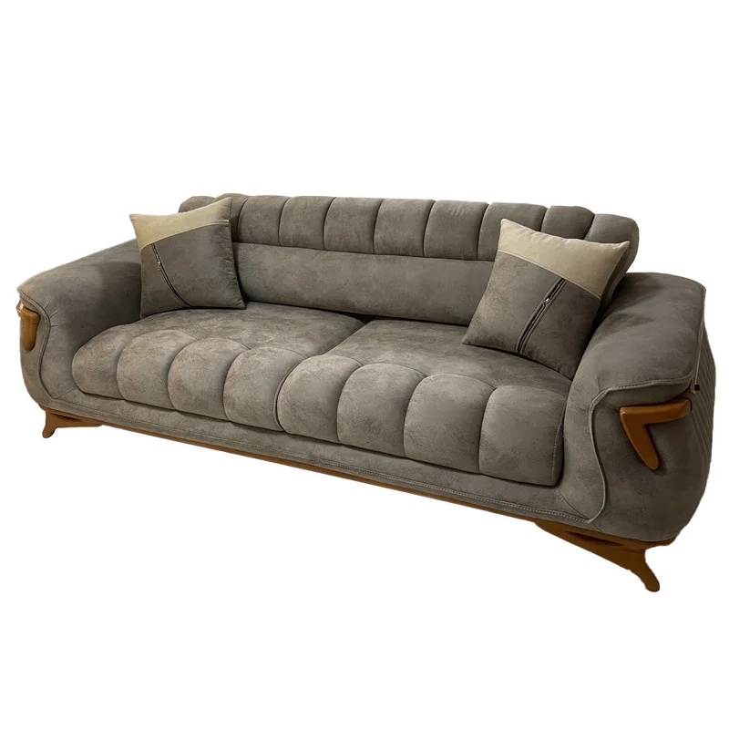 طراحی خاص و جذاب این محصول بسیار چشمگیر است. شاید در کمتر فروشگاهی نمونه آن را دیده باشید. ویولت یک مبل 8 نفره تخت خوابشو هست که کاناپه ها با قابلیت مکانیزم های خاصی که دارد به شکل یک تخت در میاد تا برای جلوی تی وی یا استراحت کردن لذت بخش باشه. پارچه ویولت هانزو که بسیار کیفیت بالایی دارد و بسیار مبل رو خوشگل میکنه. پایه ها و چوب های به کار رفته در ویولت از جنس راش گرجستان میباشد که دوام و رنگ پذیری عالی دارد. نشیمن فوق العاده راحت از جنس یورولوکس که احساس راحتی را به ارمغان می آورد. دوخت های ظریف صنعتی با نخ 12 لا که بر کیفیت کار می افزاید. در نظر داشته باشید رنگ انتخابی شما برای کاناپه ها و داخل تکی ها اجرا میشود و رنگ بیرونی تکی ها کرم میباشد. در صورت انتخاب رنگ کرم بیرون تکی ها و قسمتی از کوسن ها طوسی انجام میشود.