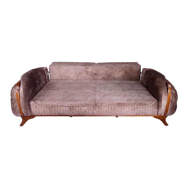 امروزه با توجه به رشد بافت های شهری به شکل آپارتمانی و محدودیت فضای مسکونی، شاهد استقبال بالا از مبلمان چند منظوره در بازار هستیم. یکی از این دسته مبلمان، مبل های تختخواب شو هستند که روز به روز بیشتر مورد توجه قرار می گیرند و در طراحی ها و ابعاد مختلف تولید و عرضه می شوند. مبل تختخواب شو سه نفره هومزا مدل لیون کد Soft01 که قصد معرفی آن را به شما عزیزان داریم یکی از مدل های پرفروش بازار است. در قسمت نشیمن این محصول از اسفنج 30 کیلوگرمی با کیفیت مناسب و قابلیت ارتجاعی بالا بهره گرفته شده که آن را برای استفاده به شکل تختخواب مناسب می سازد. هر پشتی دارای 2 جک گردان فلزی با مقاومت و استحکام مناسب می باشد. پس از انتقال پشتی ها به عقب، مبل به شما فضای 90 سانتیمتر را ارائه می دهد که عرض استاندارد یک تشک تک نفره است. پایه ی این محصول از جنس چوب روس تهیه شده و برای مبل های سه نفره، دو عدد پایه کمکی در نظر گرفته شده است که باعث تقسیم وزن مناسبی روی پایه ها می شود. تک نفره های این ست هم راحتی مناسبی را هنگام نشستن به شما ارائه می دهند. پارچه این محصول از نوع «سافت» بوده که از پارچه های با کیفیت و پر استفاده در صنایع مبلمان مبلمان محسوب می شود. مدل لیون یک ست هشت نفره ی کاربردی، مستحکم و زیباست که می تواند از گزینه های مناسب شما در انتخاب مبل تختخواب شو باشد.