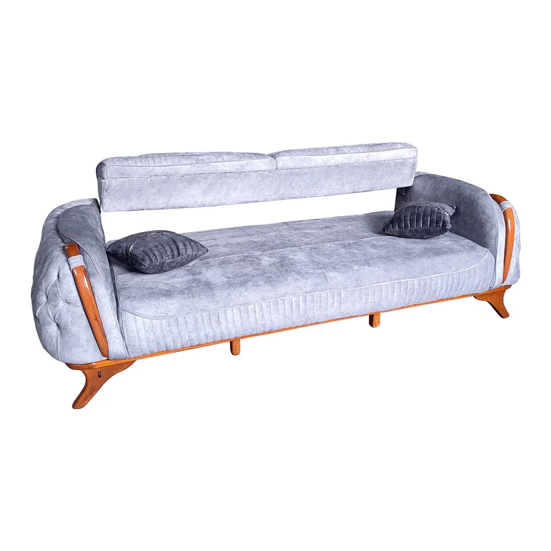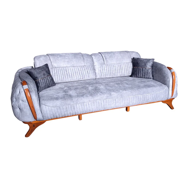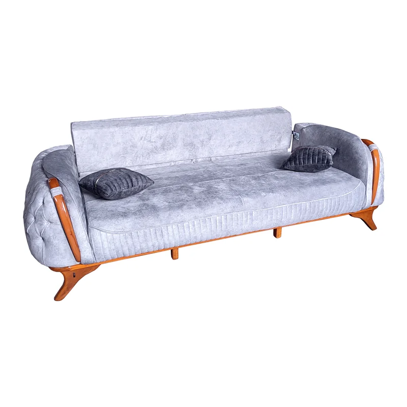 امروزه با توجه به رشد بافت های شهری به شکل آپارتمانی و محدودیت فضای مسکونی، شاهد استقبال بالا از مبلمان چند منظوره در بازار هستیم. یکی از این دسته مبلمان، مبل های تختخواب شو هستند که روز به روز بیشتر مورد توجه قرار می گیرند و در طراحی ها و ابعاد مختلف تولید و عرضه می شوند. مبل تختخواب شو هشت نفره هومزا مدل لیون کد LV01 که قصد معرفی آن را به شما عزیزان داریم یکی از مدل های پرفروش بازار است. در قسمت نشیمن این محصول از اسفنج 30 کیلوگرمی با کیفیت مناسب و قابلیت ارتجاعی بالا بهره گرفته شده که آن را برای استفاده به شکل تختخواب مناسب می سازد. هر پشتی دارای 2 جک گردان فلزی با مقاومت و استحکام مناسب می باشد. پس از انتقال پشتی ها به عقب، مبل به شما فضای 90 سانتیمتر را ارائه می دهد که عرض استاندارد یک تشک تک نفره است. پایه ی این محصول از جنس چوب روس تهیه شده و برای مبل های سه نفره، دو عدد پایه کمکی در نظر گرفته شده است که باعث تقسیم وزن مناسبی روی پایه ها می شود. تک نفره های این ست هم راحتی مناسبی را هنگام نشستن به شما ارائه می دهند. پارچه این محصول از نوع «لویی ویتون» بوده که از پارچه های با کیفیت و پر استفاده در صنایع مبلمان مبلمان محسوب می شود. مدل لیون یک ست هشت نفره ی کاربردی، مستحکم و زیباست که می تواند از گزینه های مناسب شما در انتخاب مبل تختخواب شو باشد.