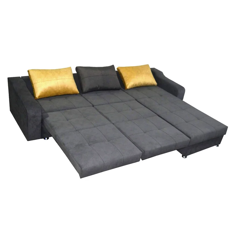 مبل تختخوابشو سهنفره مدل L یکی از منحصربهفردترین مدلهای تختخوابشو در ایران است که با نمونههای مشابه در بازار از منظر امکانات تفاوتهای بارزی دارد. از جملۀ این امکانات میتوان به قابلیت استفاده از محصول بهصورت «اِلِ» چپچین و راستچین، تغییر اندازۀ بخش باکسدار به اندازۀ دلخواه و استفاده از آن بهصورت مجزا از قسمت دو نفرۀ محصول، همانند یک تختخواب یکنفره اشاره کرد. علاوهبراین هر دو قسمت اِل و نشیمنگاه دو نفرۀ این مبل، جَکدار است که باعث میشود بازوبستهشدن آن راحتتر از تمامی مدلهای پیشین صورت گیرد. گفتنی است دستۀ بیرونی بخش «اِلِ» محصول (یا همان بخش محفظهدار) قابلیت تغییر بهصورت تمامقد را دارا است .