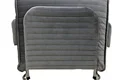 مبل تختخوابشو یک نفرۀ مدل «لِدا» در عینِ بیپیرایگی بصری، تمامی خصوصیات و امکانات یک تختخوابشو مدرن را دارا است. فرم مینیمال و کاربری آساناش مناسب تمامی آپارتمانهای امروزی، بیمارستانها، هتلها، ویلاها و دفاتر اداری است. نشیمنگاه و پشتی محصول از فوم یورتان ۳۰ کیلویی تهیه شده که علاوه بر طبیبودناش، چگالی بسیار بالایی دارد که همین امر به دوام محصول کمک شایانی میکند. در کفی مبل و تخت این تختخوابشو از توری مفتول فلزی (مش) استفاده شده است و پارچۀ بهکاررفته در مدل «لِدا» از جنس الیاف نانو است که علاوه بر تنوع در رنگ، در برابر انواع لکهها، بهغیر از لکههای سخت، قابلیت لکهزدایی بالایی دارد. تمامی قسمتهای زیرین پارچه با الیاف لایکو از تشک جدا شده و قسمت روی پارچه نیز لمسهدوزی شده است، که این خصیصه باعث گردش هوا میان قسمتهای مذکور شده و از چروکشدن پارچه و تعریق در هنگام خواب جلوگیری میکند. تمامی قطعات فلزی بهکاررفته در محصول، ملوّن به رنگ الکترواستاتیک (کورهای) است که این مزیت باعث جلوگیری از پوسیدگی قطعات میشود و استفاده از محصول را در تمامی شرایط آبوهوایی امکانپذیر میکند. اتصالات و قطعات که از فلز سبک صنعتی انتخاب شده، با جوش صنعتی (CO2) بههم متصل شدهاند که این امر وزن نهایی محصول را در قیاس با سایر مبلهای تختخوابشو یکنفره بسیار پایین آورده است. بالش خواب از جنس «ویسکوز» و «بالفایور» مرغوب و قابل شستشو تهیه شده که کیسهای از جنس «اسپانباند» (الیاف پرسشده) آنها را دربرمیگیرد. چرخهای لِدا از ABS فشرده با ساچمه تهیه شده که حملونقل آن را بر تمامی سطوح آسان میکند. گفتنی است رنگ پارچۀ روکشِ تختخوابشو و کوسنهای همراه به سلیقه و انتخاب مشتری قابل تغییر است. در مجموع تختخوابشو «لِدا» مناسب افرادی است که فضای کمی برای استراحت در اختیار دارند و با این تختخوابشو میتوانند حداکثر بهره را از فضای پیرامونیشان ببرند.