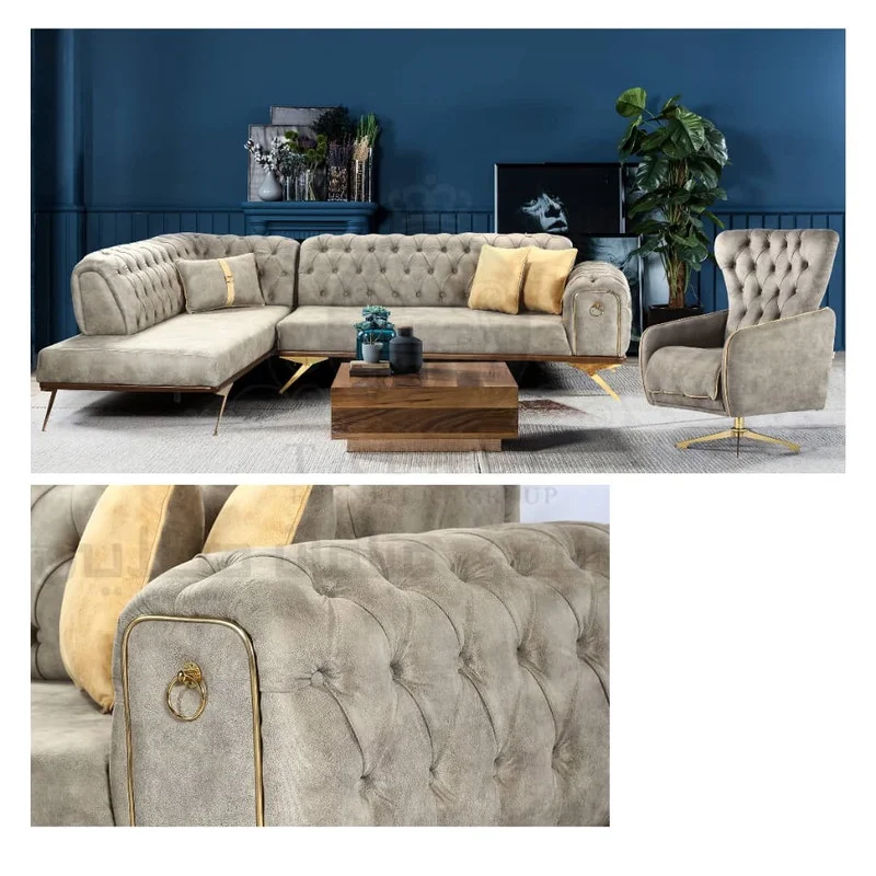 مبل راحتی 4 نفره طرح ال مدل دیاموندکرنر کد 2022 کاتن مدل 100542