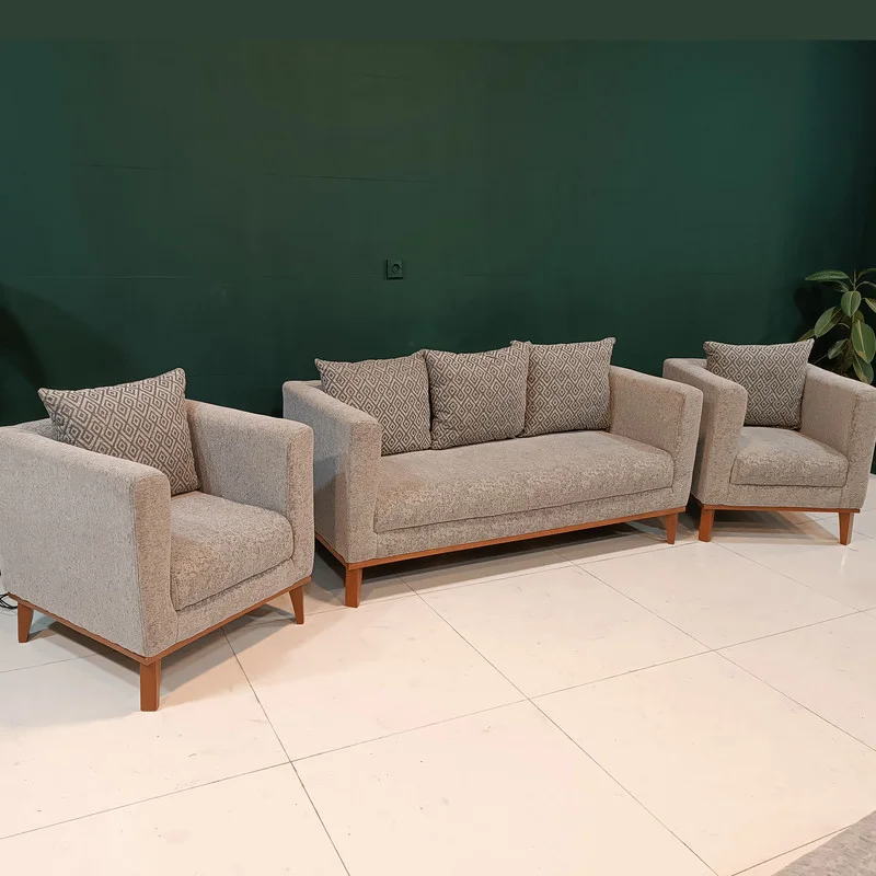 تولیدی الماس سیاه دغدغه های شما را برای خرید یک مبل با تولید مدل "مینیمال" برطرف کره است. هرآنچه شما از زیبایی،دوام، کیفیت و قیمت مناسب ازیک مبل میخواهید، در این مدل جمع شده است. این ست 5 نفره با ترکیب 3+1+1 خدمت شما ارائه مشود تمامی قسمت های چوبی کار اعم از بدنه و پایه کار از جنس چوب روس می باشند . پاسنگ و پایه ی همه ی مدل ها به رنگ فندقی می باشد. جهت نرمی، کیفیت و دوام بالاتر، برای نشیمن این کار از اسفنج 35 کیلویی استفاده شده است. در قسمت نمای بیرونی کار یعنی پارچه ، از بهترین کیفیت و بالاترین تراکم پارچه ی گونی بافت خارجی استفاده شده. این کار در 8 رنگ قابل سفارش است. همانطور که در کالیته ها مشاهده خواهید کرد، با تغییر رنگ فریم کار که از نوع طرح پتینه هستند، طرح لوزی شکل کوسن های کار نیز تغییر خواهند کرد و ست کامل کار به ترکیب رنگ انتخابی شما تولید خواهد شد. تناسب این رنگ ها و طرح های مکمل در کوسن زیبایی کار راه دو چندان کرده است.