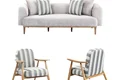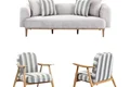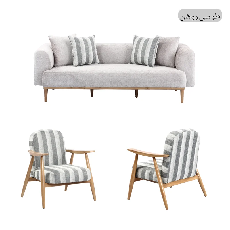 نیم ست پنج نفره ی مینیمال شامل یک کاناپه سه نفره و دو مبل تک نفره ی چوبی با جدید ترین طراحی و با استفاده از بهترین متریال مصرفی ارائه می شود.کلاف استفاده شده در ساخت این محصول تماما چوب مرغوب و مستحکم روس می باشد.در پایه های این محصول از چوب خودرنگ راش استفاده شده که علاوه بر نمای چوبی زیبا دوام بالایی نیز دارد.اسفنج مصرفی در قسمت نشیمن محصول اسفنج 35 کیلویی ویژه که مرغوب ترین نوع اسفنج است استفاده شده که نشیمنی راحت و با دوام را به ارمغان می اورد.پارچه ی انتخاب شده برای این محصول پارچه ی تدی چینی بوده که در سبک مینیمال کاربرد زیادی دارد که ضمن زیبایی با ویژگی قابلیت شست و شوی انتخابی مناسب محسوب می شود.در مجموع این محصول با نمایی ساده و جذاب,نشیمنی راحت و کیفیتی بالا,انتخابی ایده ال برای دوستداران مبلمان مدرن می باشد