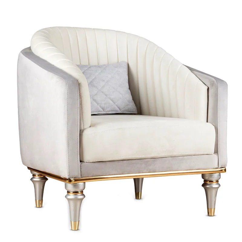 مبل راحتی با ظاهری منحصر به فرد و طراحی جدید و مدرن، میتواند پیشنهاد مناسبی برای خانه شما باشد.كيفيت استاندارد در خياطي اين مدل مبل يكي از مواردي است كه به زيبايي محصول مي افزايد.نشيمنگاه مبل سه و تك نفره از تشكي با فوم سرد 12 سانتي متري درجه يك طراحي و توليد مي شود که مناسب برای نشستن و استراحت است و با گذشت زمان به هیچ عنوان کیفیت خود را از دست نمی دهد.اسکلت این مبل از چوب روس ضد موریانه با فلز در قسمت نما و پایه های آن تولید شده که این سبک ساخت نوید طول عمر بالای این مبل را می دهد. ابعاد مبل تك نفره: عمق 65 سانتي متر، عرض 75 سامتي متر، ارتفاع 110 سانتي متر است.