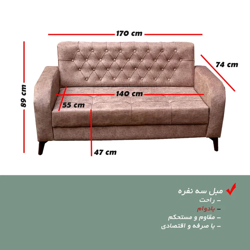 مبل راحتی هفت نفره مدل رویال میتواند تکمیلکنندهی فضای نشیمن شما باشد. همچنین میتوانید با دو عدد از این مبلها برای خودتان یک گوشهی دنج در منزل درست کنید که برای نوشیدن یک فنجان چای یا مطالعهی کتاب بسیار دلچسب خواهد بود. این مبل دارای پارچهای با کیفیت و مقاوم است و پایههای بلندی که دارد شما را از جابهجایی آن هنگام نظافت منزل و جارو کشیدن بینیاز میکند. . بدنه و کلاف به کار رفته در ساخت این مبل از جنس چوب است و در لایه ی میانی آن از فوم سرد استفاده شده است. فوم سرد مقاومت بسیار بالایی دارد و در طول زمان شکل خود را حفظ خواهد کرد. پارچه و طراحی این مبل به گونه ای است که برای نظافت آن مشکلی وجود نداشته باشد. در کنار زیبایی استحکام این مبل دارای قیمت اقتصادی بوده و هزینه ی بالایی برای شما در پی نخواهد داشت.