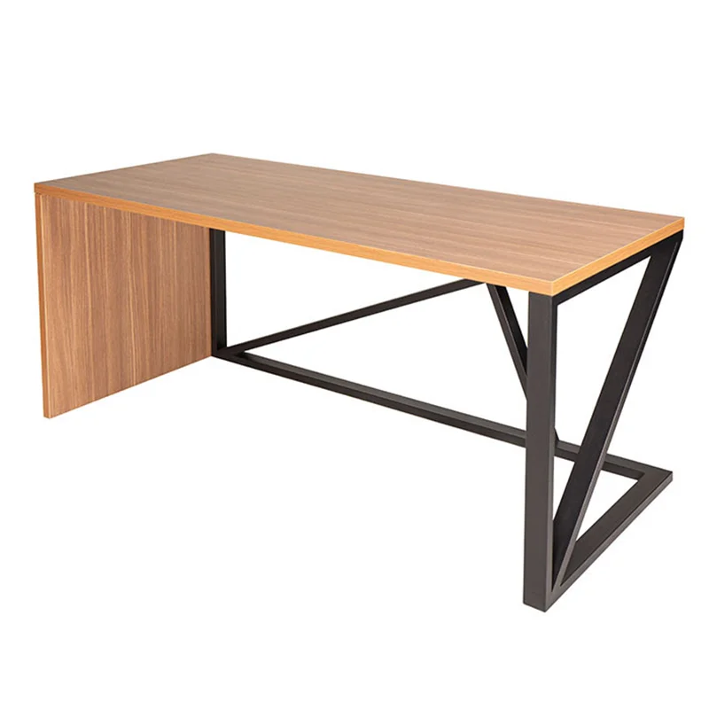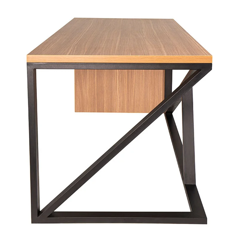 محصولی در بخش مدیریت با ترکیبی از پایه فلزی زاویه دار که حس مینیمال بیشتری را در محیط القا میکند. نمای مقابل این میز در نظر اول جالب و محسورکننده است زیرا در نگاه اول درکی از نوع چرخش فلز برای ایستایی میز را نمایان نمیکند. جذابیت این محصول با ترکیب ام دی اف طرح چوب و پایه مشکی رنگ چندین برابر میشود. ممکن است برخی از مشتریان به علت نمایان بودن فضای زیرمیز از روبرو این محصول را در لیست انتخابی خود قرار ندهند.