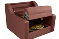 مبل تخت خواب شو مدل کیمیا مدلی میباشد که هم داخل سالن استفاده میشود و هم در اتاق خواب ،در زیر تخت یک باکس بزرگ طرحی شده و در این نوع تخت قسمت خواب و نشیمن جدا از هم بوده که این امر باعث طولانی شدن عمر تخت و خصوصیات بهداشتی هم دارد اسکلت و شاسی کار فلز میباشد و زیر کار از فنس طوری فلزی برای جلوگیری از عدم فرو رفت زود هنگام تشک استفاده شده است در قسمت تشک یک کاور روی تخت به عنوان هدیه داده میشود و به همراه رنگ انتخابی مبل یک عدد پشتی تکیه گاه و یک کوسن کوچیک بالشتی تحویل داده میشود