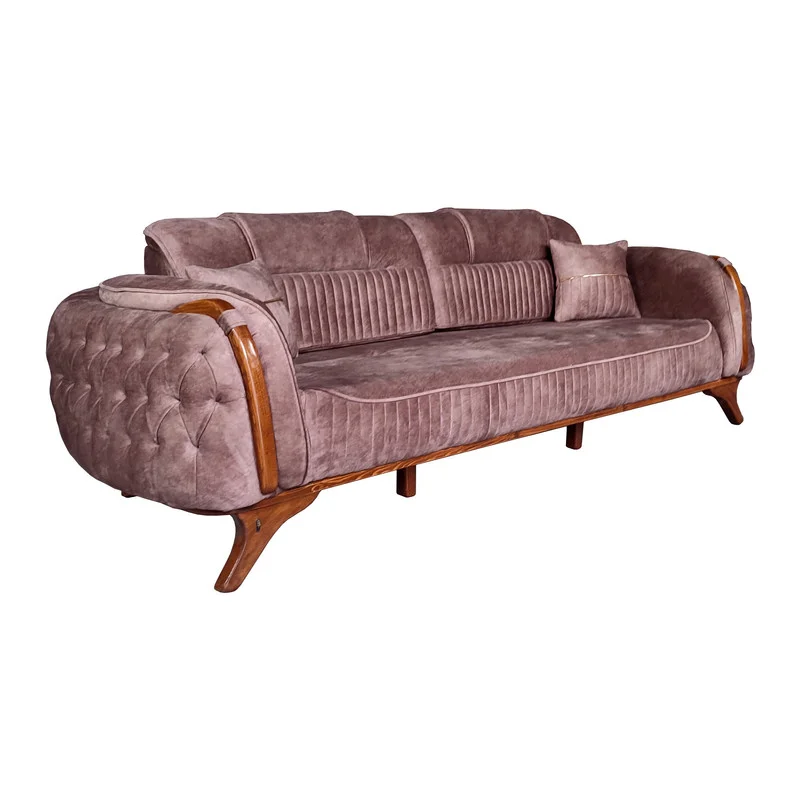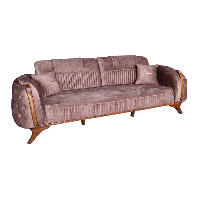 امروزه با توجه به رشد بافت های شهری به شکل آپارتمانی و محدودیت فضای مسکونی، شاهد استقبال بالا از مبلمان چند منظوره در بازار هستیم. یکی از این دسته مبلمان، مبل های تختخواب شو هستند که روز به روز بیشتر مورد توجه قرار می گیرند و در طراحی ها و ابعاد مختلف تولید و عرضه می شوند. مبل تختخواب شو سه نفره هومزا مدل لیون کد Soft01 که قصد معرفی آن را به شما عزیزان داریم یکی از مدل های پرفروش بازار است. در قسمت نشیمن این محصول از اسفنج 30 کیلوگرمی با کیفیت مناسب و قابلیت ارتجاعی بالا بهره گرفته شده که آن را برای استفاده به شکل تختخواب مناسب می سازد. هر پشتی دارای 2 جک گردان فلزی با مقاومت و استحکام مناسب می باشد. پس از انتقال پشتی ها به عقب، مبل به شما فضای 90 سانتیمتر را ارائه می دهد که عرض استاندارد یک تشک تک نفره است. پایه ی این محصول از جنس چوب روس تهیه شده و برای مبل های سه نفره، دو عدد پایه کمکی در نظر گرفته شده است که باعث تقسیم وزن مناسبی روی پایه ها می شود. تک نفره های این ست هم راحتی مناسبی را هنگام نشستن به شما ارائه می دهند. پارچه این محصول از نوع «سافت» بوده که از پارچه های با کیفیت و پر استفاده در صنایع مبلمان مبلمان محسوب می شود. مدل لیون یک ست هشت نفره ی کاربردی، مستحکم و زیباست که می تواند از گزینه های مناسب شما در انتخاب مبل تختخواب شو باشد.