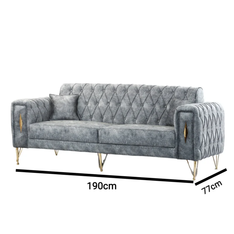کاناپه ی سه نفره ی پاتریس ,با طراحی جدید و با استفاده از بهترین مواد اولیه ارائه می شود.در قسمت نشیمن این محصول,از اسفنج 35 کیلویی و در قسمت تکیه گاه و دسته ها از اسفنج 25 کیلویی استفاده شده که نشیمنی راحت و با طول عمر بالا را به ارمغان می اورد.در کلاف این محصول از چوب روس استفاده شده که در کنار پایه های استیل ضد زنگ,استحکام مناسبی را ایجاد می کند.همچنین پارچه ی نانوی قابل شست و شوی این محصول امکان شست و شوی و نظافت اسان را به شما می دهد.در این تولید این مبل بین پارچه و اسفنج یک لایه لایکو قرار داده شده که علاوه بر افزایش طول عمر محصول باعث جلوگیری از چروک شدن پارچه می شود.