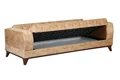 کاناپه تختخواب شو دارای نشیمن بزرگ که قابلیت نشیمن برای چهار نفر را دارد (190) و کل فضایی که اشغال میکند حدود05 می باشد. جنس کلاف اصلی از فلز سبک صنعتی می باشد و همچنین فضای خالی جهت نگهداری پتو و بالش زیر آن تعبیه شده است. برای زیبایی دو چندان این محصول از پایه های طرح چوب و نمای بین پایه ها چوب وکیوم شده نیز استفاده شده است.کاتن یک از بزرگترین و متنوع ترین تولید کننده مبلمان مدرن و تختخوابشو می باشد که سابقه تولید مستمر محصولات مدرن،. بازرسی ها متعدد کیفی در هنگام ورود مواد اولیه تا خروج محصول تولیدی سبب تولید محصول باکیفیت و تامین رضایت حداکثری مشتریان گردیده است. ساختار اکثر تولیدات شرکت از فلز می باشد و اتصالات توسط جوش های متعدد صنعتی مستحکم گردیده و همچنین کف نشیمن اچ آر با دانسیته بالا می باشد که مبل را برای سالهای سال به حالت اولیه نگه میدارد.