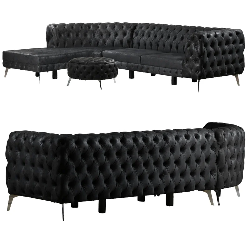 مبلمان سبک ال با طراحی مدرن و جذاب همچنین کیفیت فوق العاده ساخته شده از ترکیب چوب های جنگلی و روس برای مقاومت بیشتر به همراه پاف چستر گرد به دست شما مشتریان محترم میرسد. این مدل با پایه های فلزی و جذاب جدید طراحی شده که سبک مدرن خود را بیشتر به نمایش بگذارد.
