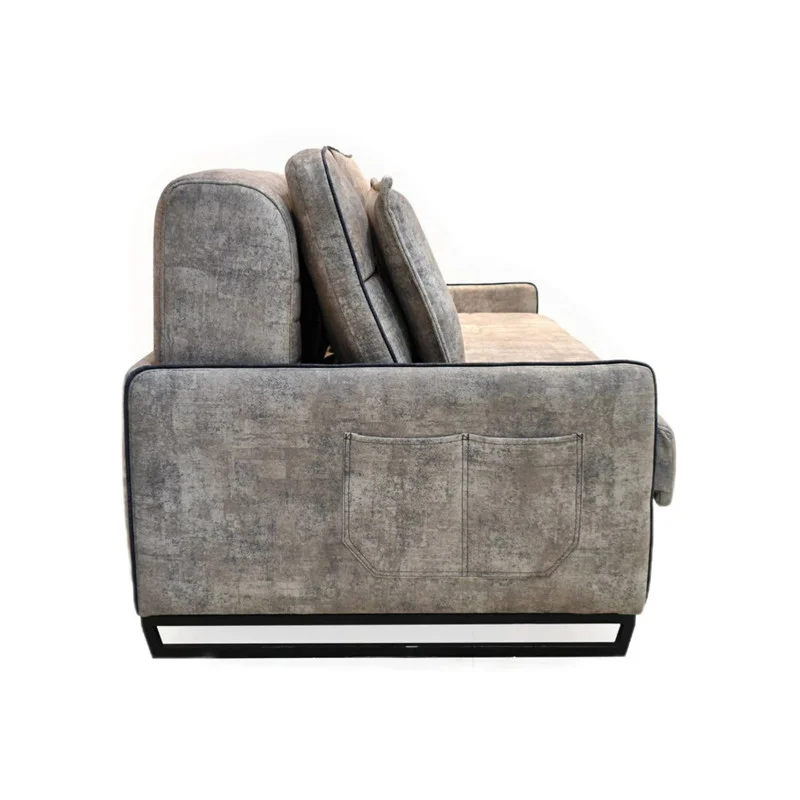 مبل تختخوابشو مدل لالوسکی طرح جدید لگنی ،محصولی بسیار کم جا در عین حال اسپرت و کاربردی ،استایل این محصول با توجه به دسته های کوتاهی که دارد برای حالت همیشه تخت طراحی شده و برای آن دسته از عزیزانی که مایل هستند بیشتر از حالت تخت این مبل استفاده کنند بسیار مناسب می باشد.پشت کار به گونه ای طراحی شده که میتوانید مانند یک تخت به دیوار بچسبانید آنچه موجب تفاوت این محصول از سایر محصولات می شود جیب های تعبیه شده در کنار دسته ها می باشد روی هر دسته دو جیب طراحی گردیده که ابعاد هر جیب 18 در 24 می باشد و برای نگهداری کنترل تلویزیون، مجله، شارژر و هر وسیله ی دیگر مناسب این ابعاد قابل استفاده می باشد پایه ها و دسته های این محصول و نوع دوخت طرح جدید می باشد و نمونه ی مشابهی ندارد جذابیت های بصری ، کارایی بالا ، دوام و استحکام متریال به کار گرفته شده در این محصول به شما در انتخاب هر چه بهتر یک مبل مدرن کمک می کند کل اسکلت این مبل از فلز استفاده شده (حتی پایه ها ) ، ما اینجا برای تولید مبلمان ، درختان را قطع نمیکنیم و اینگونه تعهد خود را به محیط زیست ثابت میکنیم نشیمن این مبل 3 نفره می باشد و در حالت تخت ابعاد آن 140در 190می باشد و یک تخت 2 نفره محسوب می شود. کلاف زیر آن رنگ کوره می باشد که از مقاومت بسیار بالایی برخوردار است ( رنگ کوره = ضد ضربه، ضد خش و ضد زنگ زدگی با مقاومتی بسیار طولانی) با این محصول به دکوراسیون دلخواه خود دست پیدا کنید ، راحت ، سبک ، کم حجم ، با قابلیت جابه جایی آسان و مقرون به صرفه مناسب برای مکان هایی که فضای کمی دارند و نیاز به مبل و نشیمن دارند نیز برای دیزاین در مکان های مختلف مانند سالن زیبایی ، دفتر کار (قابل سفارش با رنگ دلخواه مناسب دفتر کار) ، هتل ها و یراق آلات ، مکانیزم ها، لولاها وحتی نخ دوخت استفاده شده در این محصول از کشور ترکیه وارد شده اند و همچنین فوم و اسفنج های به کار گرفته شده، از بهترین کارخانه های تولید داخل کشور فراهم گردیده تا آسایش و راحتی را هم در خواب و هم در نشیمن برای شما تامین نمایند. این کار به همراه دو کوسن دو بالشت هم رنگ رویه ی مبل تقدیم می شود. اگر شما از آن دسته افرادی هستید که نمیخواهید دیگران متوجه مبل بودن تخت خوابتان شوند ، این محصول برای شما مناسب است