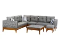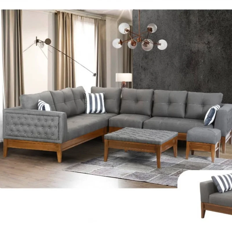 مبل راحتی ال مدل لئون با طراحی جدید و کم جا و تعداد نشیمن بالا ارائه می شود.این ست شامل یک قسمت سه نفره,کنج,یک قسمت دو نفره و تک نفره,,پاف,به همراه جلو مبلی می باشد که علاوه بر تعداد نشیمن بالا,امکان چند مدل چیدمان مختلف را به شما می دهد.مواد اولیه ی مصرف شده در این محصول شامل چوب روس در کلاف,ام دی اف رو کش چوب در پایه ها,اسفنج سی کیلویی در نشیمن و 25 کیلویی در تکیه گاه ها,ویسکوز در کوسن ها و پارچه ی نانو قابل شست و شوی می باشد که باعث ایجاد استحکام مناسب اسکلت مبلمان و راحتی محصول می شود.قسمت روی جلو مبلی و کناره های مبل به صورت لمسه می باشد که ظرافت و زیبایی بیش تری را در طراحی اضافه می کند.