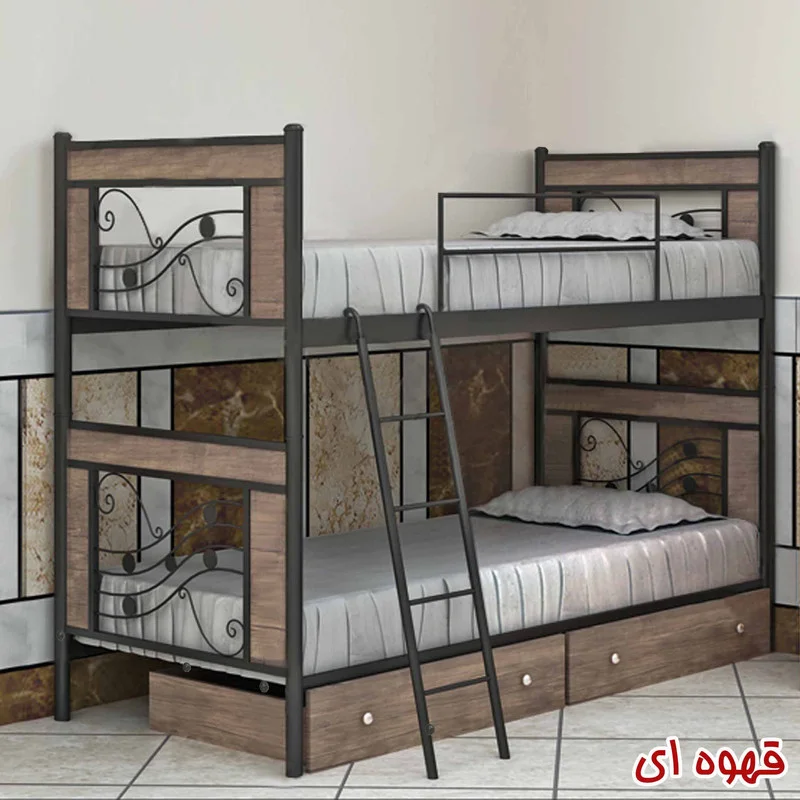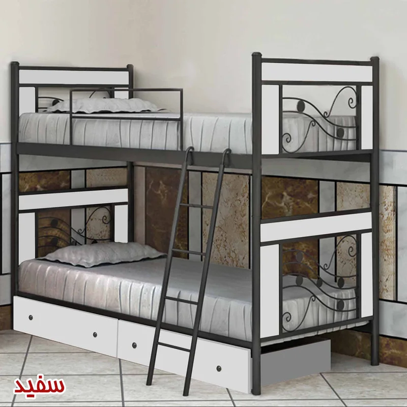 تخت خوابی که در تصویر مشاهده میکنید دارای قابلیت خوبی در استفاده به عنوان تخت خواب دونفره مخصوص فرزندان شما یا حتی فضاهایی مثل خوابگاه است. تخت خواب دونفره قابلیت خوبی برای ایجادی فضای بیشتر در اتاق جهت استفاده خواهد داشت و میتوان سایر لوازم مثل میز کامپیوتر یا میز مطالعه را در اتاق قرار داد. از این رو انتخاب تخت خواب دو طبقه کد SH03 با توجه به اینکه فریم فلزی داشته و کفی آن از چوب ساخته شده، میتواند برای فرزندان شما تا سن بالا نیز مناسب باشد. از طرف دیگر سایز 200×90 سانتیمتر باعث شده که مزیت استفاده از آن برای بسیاری از افراد در سن بالا مثل دانشجویان در خوابگاه یا هر شخص دیگری فراهم شود. یکی از نکات مثبت تخت خواب دو طبقه کد SH03، پله قابل جدا شدن و همچنین طراحی زیبای بدنه است که ترکیبی از فلز و چوب خواهد بود. در پایین نیز کشو قرار گرفته تا بتوان از آن برای لباس یا لوازم استفاده کرد.