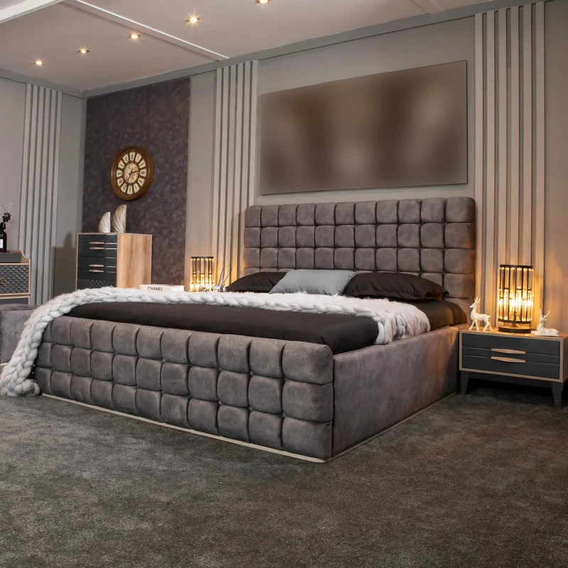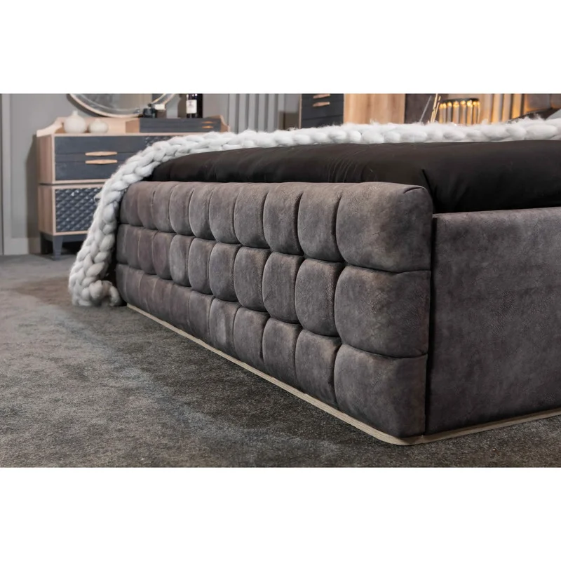 تخت خواب دو نفره مدل 194 آرنا، یک تخت خواب تمام پارجه با لمسه دوزی بسیار مدرن و جذاب می باشد. این تخت خواب با طراحی بسیار زیبا و بهترین کیفیت متریال تولید شده است. لمسه کاری این تخت خواب در قسمت های تاج تخت بالا و پایین بسیار زیبا و تمیز اجرا شده است. سایز تشک این تخت خواب 160 در 200 سانتیمتر می باشد. تخت خواب مدل 194 دارای یک کف تخت تمام پروفیل آهنی با پایه های پیچی می باشد که از مقاومت و استحکام فوق العاده ای بر خوردار می باشد.. طراحی زیبا و کیفیت بالای این تخت خواب شرکتی باعث شده تا مورد پسند هر سلیقه ای قرار بگیرد. در زیر سطح پارچه ای اسفنج های بسیار با کیفیت و انعطاف پذیری رویکوبی شده است که باعث می شود هنگام استراحت روی تخت خواب از نرمی و لطافت آن لذت ببرید.