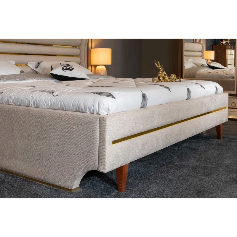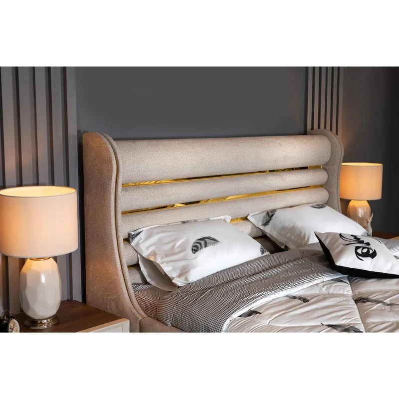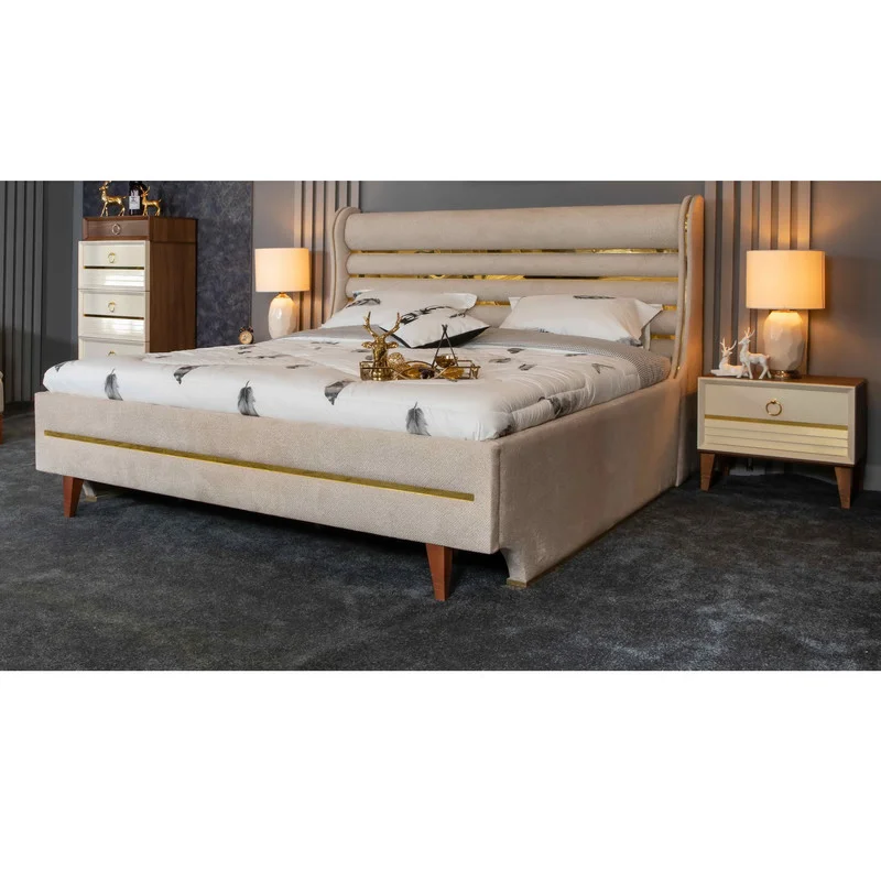 تخت خواب مدل آرنا کد 205، یک تخت خواب سبک مدرن بسیار زیبا، خاص و پر طرفدار می باشد، که با توجه به نوع طراحی و متریال استفاده شده در آن، می تواند هر اتاق خوابی را به زیبایی دکور کند و به آن حس اصالت ببخشد. تخت خواب مدل 205 تلفیقی از چوب سوپر راش گرجستان، ام دی اف واناچای تایلندی، پارچه نانوی وارداتی و رنگ پلی اورتان والرسای اسپانیا می باشد. این تخت خواب دارای یک کف تخت تمام پروفیل آهنی با پایه های پیچی می باشد که از مقاومت و استحکام فوق العاده ای بر خوردار می باشد. سایز تشک این تخت خواب دو نفره 160x200 سانتیمتر می باشد. طراحی زیبا و کیفیت بالای این تخت خواب باعث شده تا مورد پسند هر سلیقه ای قرار گیرد. در زیر سطح پارچه ای اسفنج های بسیار با کیفیت و انعطاف پذیری رویکوبی شده است که باعث می شود هنگام استراحت روی تخت خواب از نرمی و لطافت آن لذت ببرید.در قسمت سرتخت و کلگی پایین این تخت خواب از ورق های باریک شده پلگسی آینه ای استفاده شده که زیبایی دو چندانی به این تخت خواب بخشیده است.