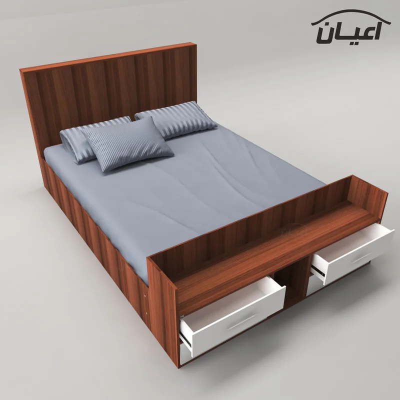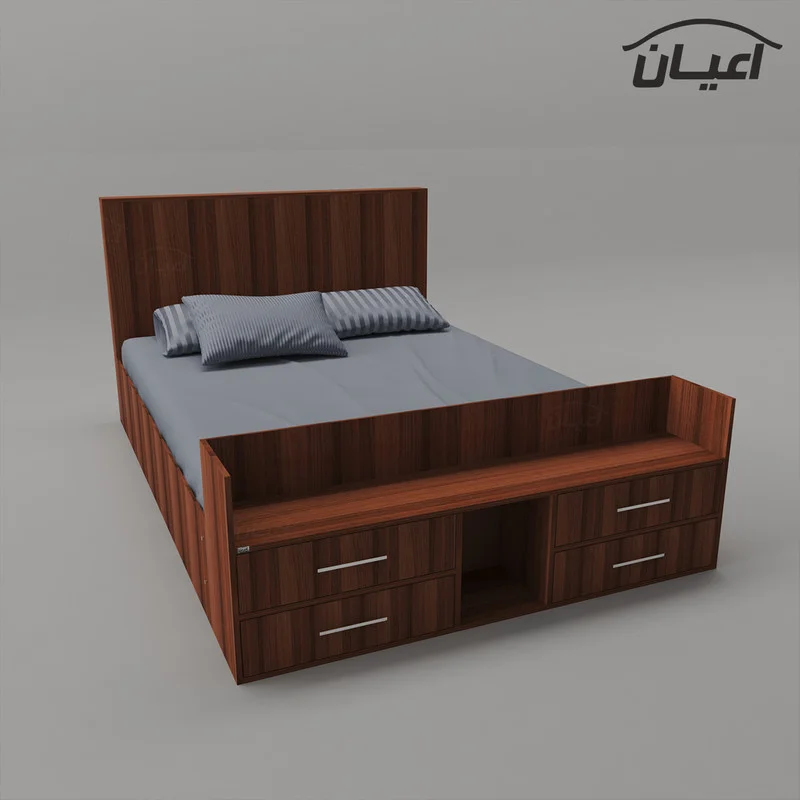 تخت دو نفره اعیان.سطح ضدخش.طراحی ساده و کاربردی.وزن متناسب با ابعاد.مناسب تشک 160x200سانت.تحمل وزن متناسب با ابعاد و به صورت استاندارد.دارای چهار کشوی بازشو با ریل سه مرحله ای.در رنگ های متنوع.بسته بندی با لوگو و برند اعیان می باشد.