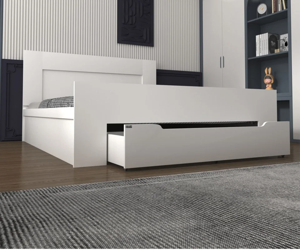 تخت خواب دونفره -جنس نئوپان ملامینه شرکتی.دارای کشو و دستگیره به صورت سی ان سی-کشو به صورت چرخدار است - کالا فاقد تشک می باشد. سایز تشک مناسب 160x200سانت است.کالا به صورت مونتاژ نشده(جدا از هم) ارسال می شود - بسته بندی کالا به صورت چهار آیتمی است - جنس کفی تخت نئوپان خام به صورت سه تکه است-رنگ بندی کالا در آلبوم قابل مشاهده است(در رنگ های سفید/مشکی/قهوه ای/قهوه ای روشن/قهوه ای تیره (ونگه) و چند رنگ تولید می شود)