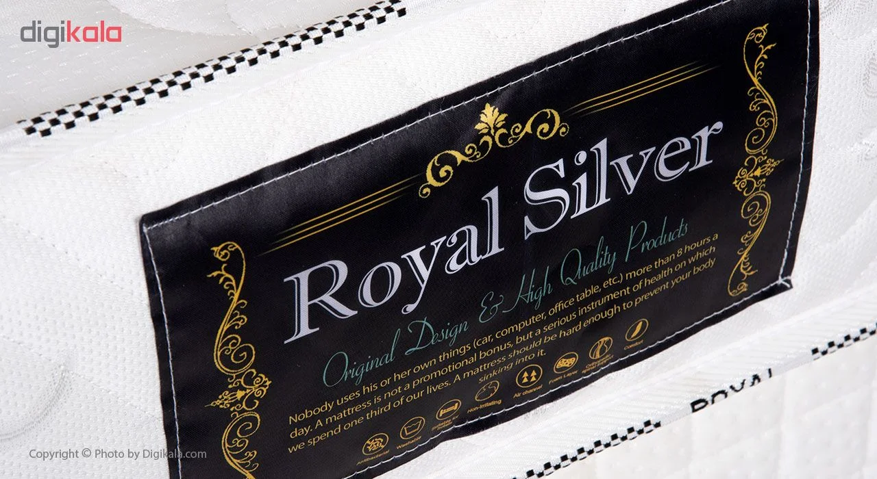 تشک سیلور از لحاظ دسته بندی جزء تشک های طبی فنری بوده و ساختاری ارتجاعی و فنری دارد. این تشک بیشتر برای افرادی که حداکثر وزنی معادل هفتاد کیلو دارند مانند کودکان و نوجوانان توصیه میشود. اجزاء داخلی تشک سیلور فنر متصل و در دوطرف آن موکت ترموفلت (موکت صنعتی) برای تقسیم فشار استفاده میشود؛ گفتنی است که روی آن، در دوطرف تشک، اسفنج 2.5 سانتیمتری با دانسیته 25 کیلوگرمی کار شده است. پارچه رویه تشک سیلور از جنس ژاگارد ضد حساسیت، ضد آلرژی و کاملا آنتی باکتریال خواهد بود. قطر تشک ضخیم بوده و معادل 21 سانتی متر است. باکس اسپرت زیر تشک تولید داخلی ولی با طرح و مدل امریکایی آن است که ساختار مطلوبی برای قرارگیری لوازم و پوشاک دارد. فرم و اسکلت آن فلزی و رویه آن ام دی اف است. جنس پارچه باکس پنبه ای گردبافت است و تفاوتش با نمونههای چوبی شرکتهای دیگر در این است که هم سبکتر بوده وهم طی مدت زمان به سر و صدا یا به اصطلاح غژغژ نمیافتد. قطر باکس با پایههای استیل استاندارد 30 سانتیمتر است ولی درصورت درخواست مشتری یا تقاضای بازار قطر آن بیشتر هم میشود. لازم به ذکر است که اگر مشتری سایز 180x200 را که دونفره بزرگ است، سفارش دهد به دلیل حمل و نقل آسانتر و امکان حمل آن در راه پله های ساختمانی، 2 باکس تک نفره 90 ارسال می شود و با کنار هم قرار گرفتن، تشک یک تکه روی اون قرار میگیرید. در نهایت بهتر است بدانید که تحمل وزن در تمام نقاط تشک 70 کیلوگرم است.