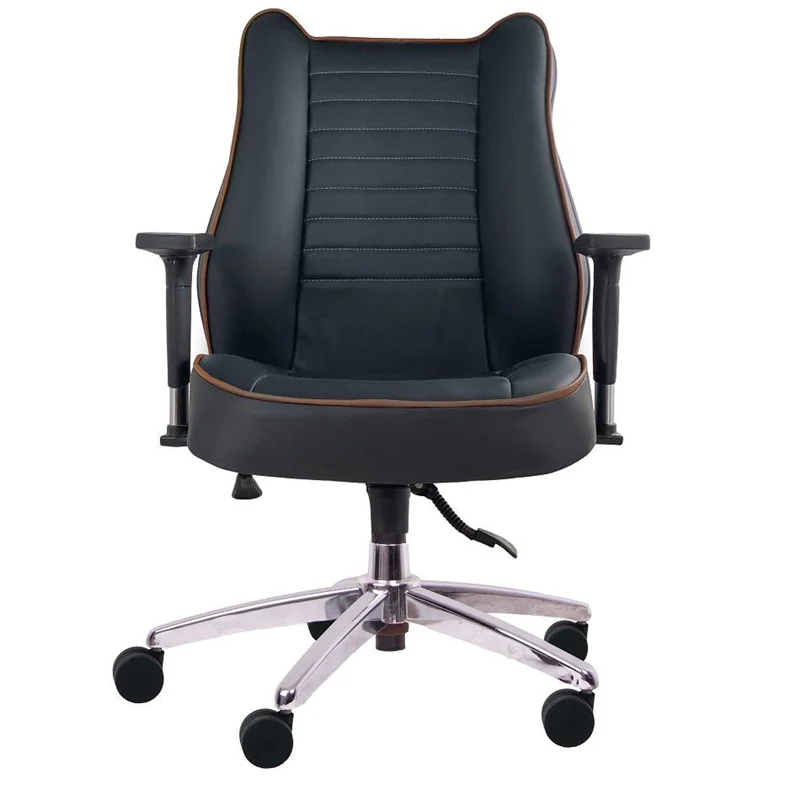 صندلی کارشناسی با طراحی بسیار شیک و زیبا .مکانیزم صندلی دو دسته کلاجی با قابلیت قفل شدن در حالتی است.پایه صندلی پنج پر ورقی فولادی با آبکاری کروم و جنس فوم صندلی از نوع سردمی باشد که باعث ماندگاری بالای آن می شود . حنس روکش چرم دوخته شده ی پلی اورتان می باشد.به همراه دسته های تنظیمی و جک 12 سانت