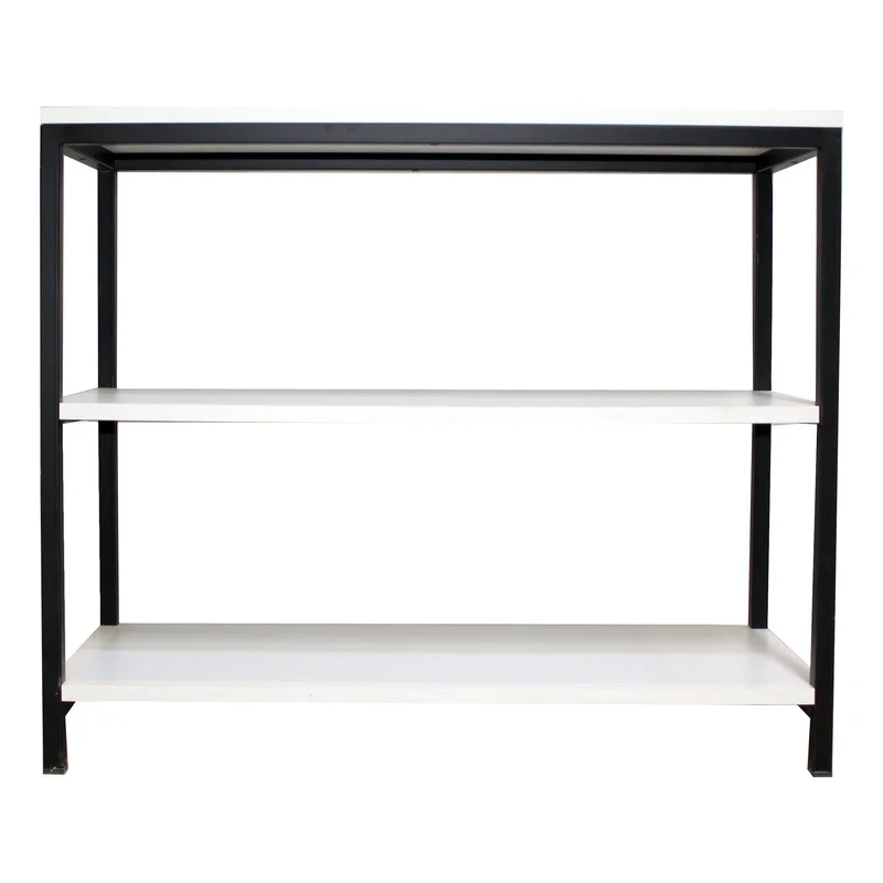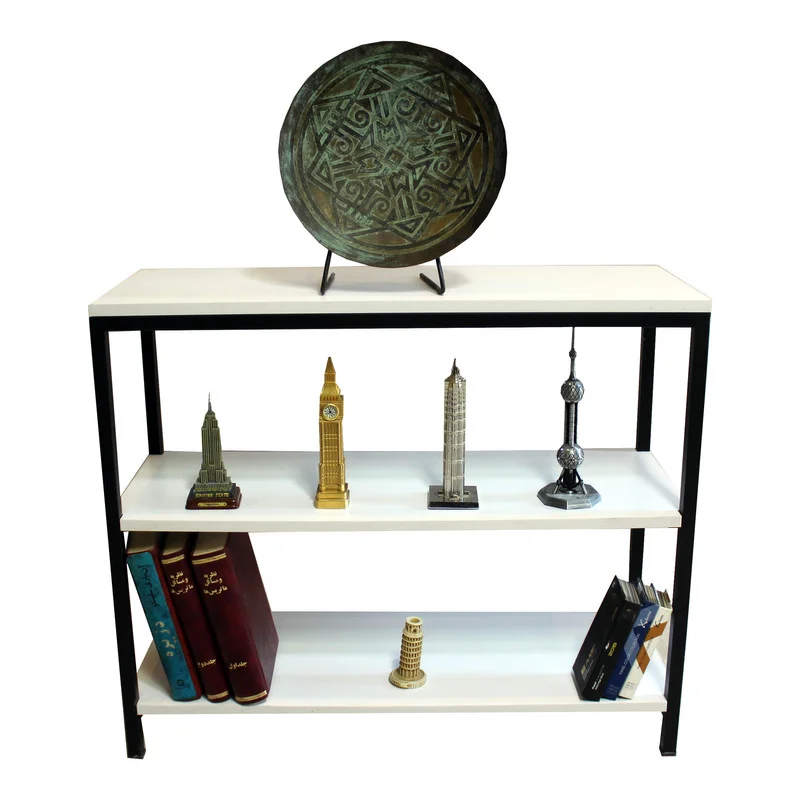 کتابخانه 3 طبقه مدل IKE433 تلفیقی از چوب و فلز جنس چوب از (ملامینه ضد خش) و جنس آهن بسیار مستحکم و بادوام میباشد و رنگ آهن از رنگ مشکی کوره ای استفاده شده و ملامینه ها دارای سه رنگ گردویی(قهوه ای روشن) ، آنتیک طلایی ( قهوه ای) و سفید زیبا و شکیل میباشد.