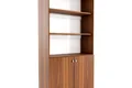 کتابخانه اداری و خانگی از جنس ملامینه که از 2 قسمت تشکیل شده پایین کار 2 عدد درب که به 3 طبقه تقسیم بندی شده مناسب برای پوشه و زونکن طراحی شده و بالا فضای بدون درب برای کتاب که جلوه شیکی را به منزل و محل کار شما میدهد