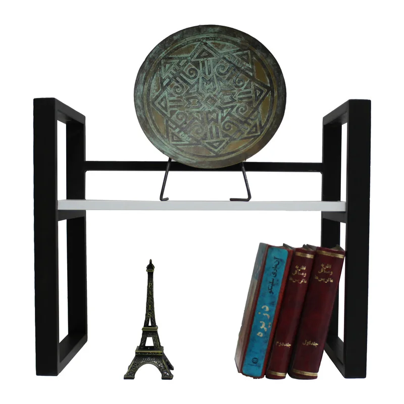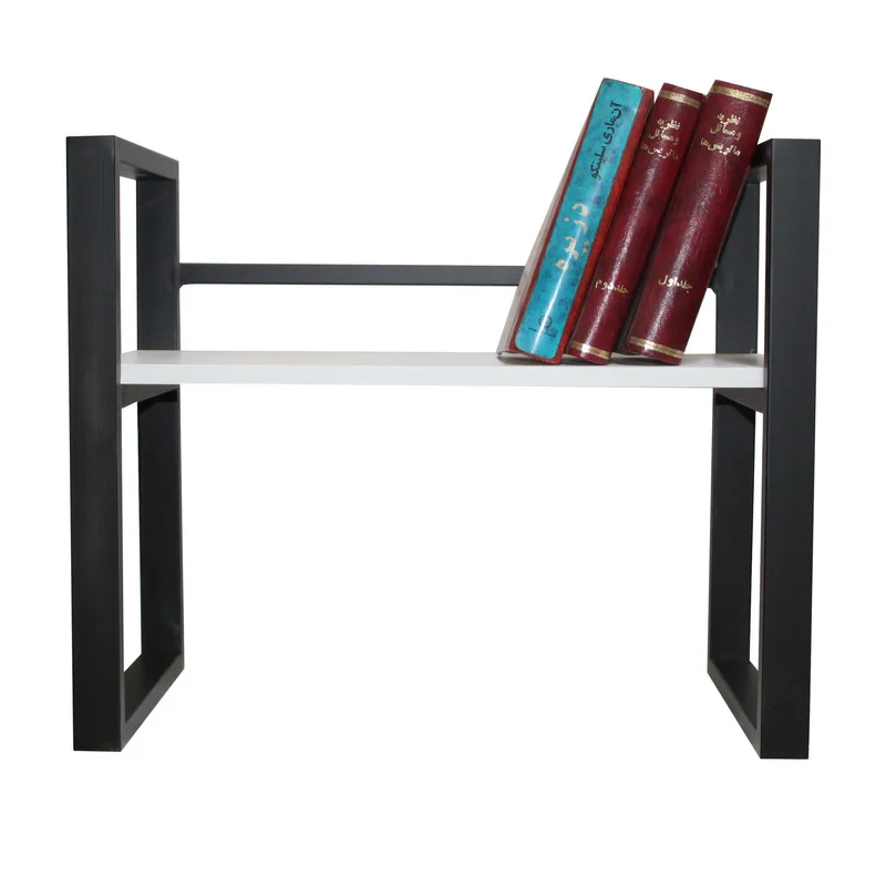 کتابخانه مدل رومیزی کد IKE435 تلفیقی از چوب و فلز جنس روکش از ملامینه ضد خش میباشد و دارای فلز مستحکم رنگ مشکی کوره ای و در رنگ های زیبا و شکیل گردویی و انتیک طلایی و سفید میباشد .