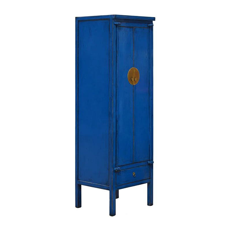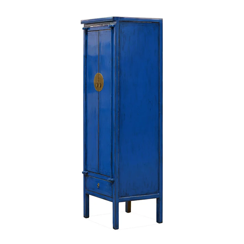 ساخت ، رنگ آمیزی و پتینه این کمد به صورت دستی ساخته و پردازش شده به همین دلیل شما همیشه یک محصول Limited و منحصر به فرد خریداری کرده اید . این کمدل با ظاهری شکیل و تزئینات کم، فلسفه زیبایی را از طریق سادگی در خود جای داده است. رنگ آبی با دستگیره های فلزی صیقلی به رنگ برنج تکمیل میشود.مطمئناً در هر کجا که قرار می گیرد بیانیه ای پر رنگ خواهد داشت .