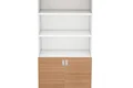 چیدمان منازل و یا دفاتر اداری و محل کار، از مواردی است که معمولا با حساسیت بسیار زیاد و با دقت و سلیقه انجام میشود. برای یافتن لوازمی که متناسب با محیط و سلیقهی ما باشد معمولا زمان زیادی صرف خواهد شد. یکی از لوازمی که در چیدمان و ایجاد نظم، یاری بخش خواهد بود، کمدها و قفسهها هستند. محصولات خانواده کوییک، تولید شرکت محیط آرا در مدلهای متفاوت و متناسب با نیازهای مختلف طراحی و تولید شدهاند. «کتابخانه محیط آرا مدل Quick 9422N-0306» که دارای سه طبقه بدون در و دو طبقهی در دار به صورت کمد است. این کمد از بهترین گزینههایی است که با اشغال مساحتی کم، ظرفیت بسیار خوبی داشته و میتواند لوازم زیادی را در خود جای دهد. این کمد زیبا و جادار، با لولای آرامبند نصب شده روی در کمد و پایه رگلاژ به کار رفته در آن، از دیگر محصولات موجود در بازار متمایز شده است. این کتابخانه با ابعاد مناسب در هر جایی قابل استفاده بوده و به راحتی میتوان در کنار میز منشی، در کنار میز تحریر و در هر گوشهای از منزل و محل کار آن را جای داد. از ویژگیهای مثبت این کتابخانه استفاده از دستگیرههای توکار بر روی در کمدها است که فضای اضافی و بیرون از کتابخانه را اشغال نکرده و بسیار راحت و استاندارد است. کمد دو طبقهی این محصول جای مناسبی برای نگهداری از وسایلی است که لازم نیست جلوی چشم باشند. پایهی رگلاژ قابل تنظیم که ارتفاع این قفسه را تا زمین تنظیم میکند امکان استفاده از این محصول را بر روی انواع سطوح فراهم میکند.