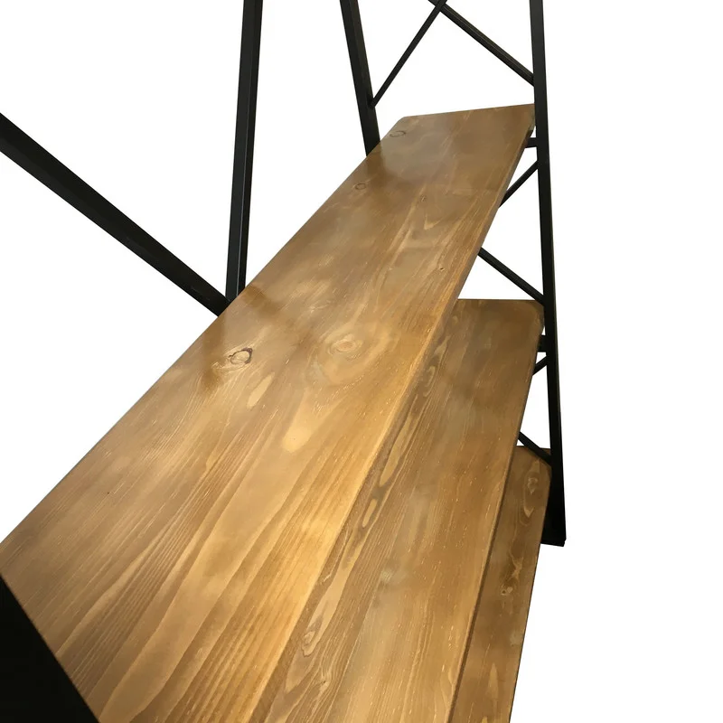 کتابخانه مدل BX200 انتخابي ايده آل براي دوستداران دکوراسيون سبک روستيک است و با استفاده از الوار چوب طبيعي روس وارداتي که در کوره کاملا خشک شده است( براي جلوگيري از ترک وتابيدگي) و فريم فلزي (پروفيل سبک براي سهوات در جابجايي)مي تواند گزينه ي مناسبي جهت زيبا سازي چيدمان کتاب ها و وسايل دکوري در منزل باشد . براي ساخت فريم محصول از پروفيل صنعتي 40×20 mm و با روش جوشکاري تيگ (ارگون) ساخته و سپس تمامي اتصالات با دقت زياد پرداخت شده تا هيچگونه اثر و زائده جوش مشخص نباشد همچنين پايه فلزي محصول با رنگ کوره اي الکترواستاتيک که از مقاومت بالايي برخوردار است پوشش داده شده است.