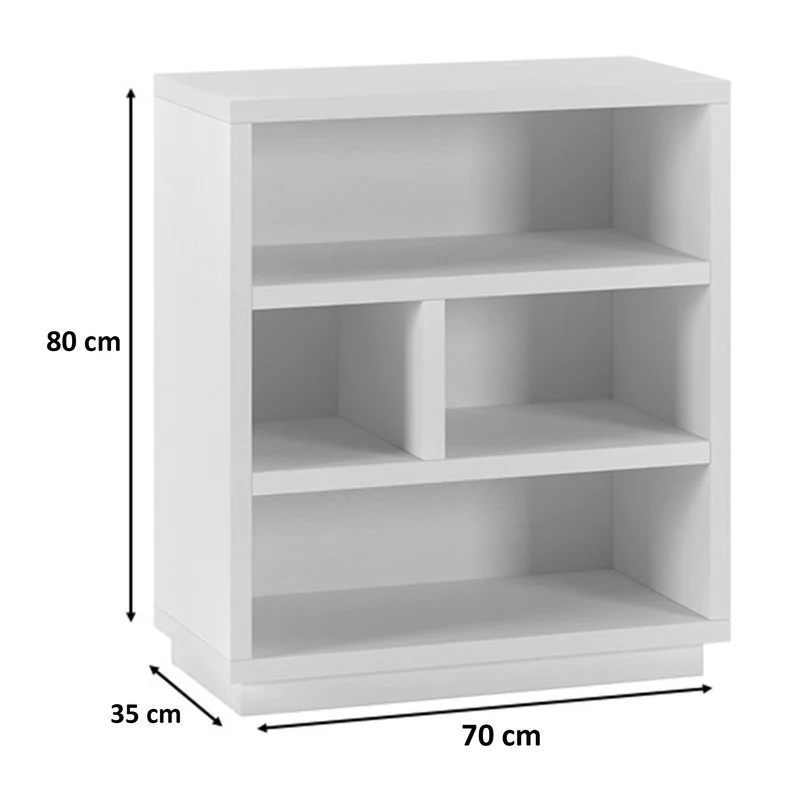 کتابخانه دارای سه طبقه میباشد و جنس روکش از ملامینه ضد خش میباشد و طبقه وسط به دو قسمت تقسیم شده و همچنین استحکام این کتابخانه جهت کالاهای دکوراتیو و کتاب مناسب است.