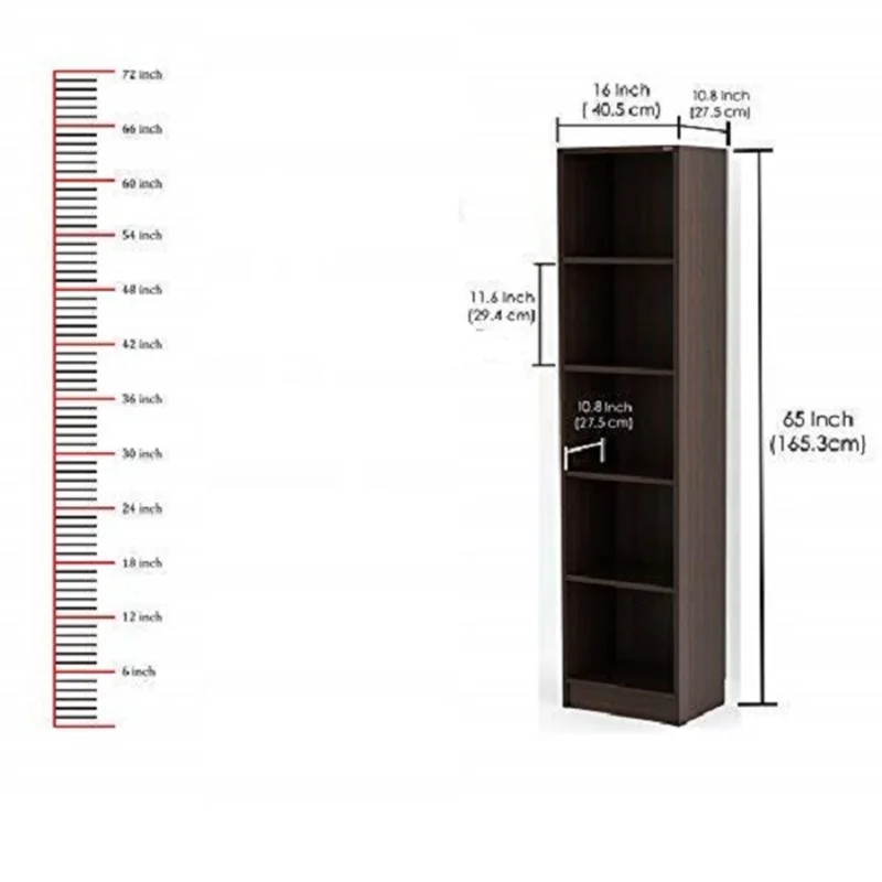 کتابخانه که دارای کاربرددوگانه کتابخانه و دکوری می باشد و به صورت ایستاده بوده و در 5 طبقه از جنس ام دی اف روکش دار با نوار پی وی سی همرنگ ساخته می شود