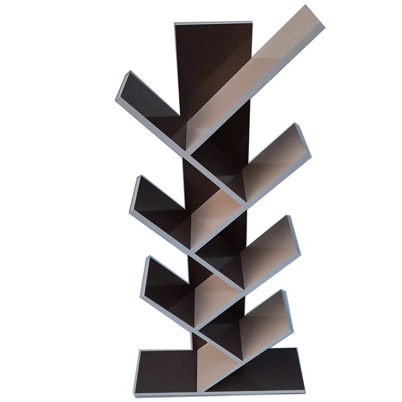 کتابخانه درختی تمام ملامین، بسیار مستحکم و پایدار است. این کتابخانه با ابعاد 20 × 60 × 120سانتیمتر و 7 طبقه برای قرارگیری کتاب، به گونهای طراحی شده که سطح اتکای کافی و استحکام بالایی داشته باشد و در ضمن برای قراگیری کتابها فضای قابل قبولی را ارائه دهد. این کتابخانه در رنگهای "قهوهای (گردویی)" ، "سفید"، "کرم (رنگ بلوط روشن)" ،"قهوهای تیره (قهوهای سوخته یا ونگه) " و "کرم اکلینی" و رنگ قرمز( آبنوس رگه قرمز دار) " موجود است. این محصول به نسبت فضای کمی که اشغال میکند گنجایش زیادی برای قرارگیری کتاب دارد.