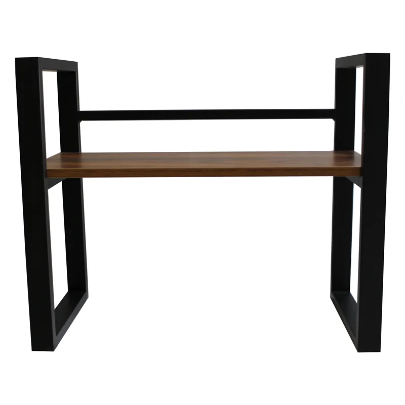 کتابخانه مدل رومیزی کد IKE435 تلفیقی از چوب و فلز جنس روکش از ملامینه ضد خش میباشد و دارای فلز مستحکم رنگ مشکی کوره ای و در رنگ های زیبا و شکیل گردویی و انتیک طلایی و سفید میباشد .