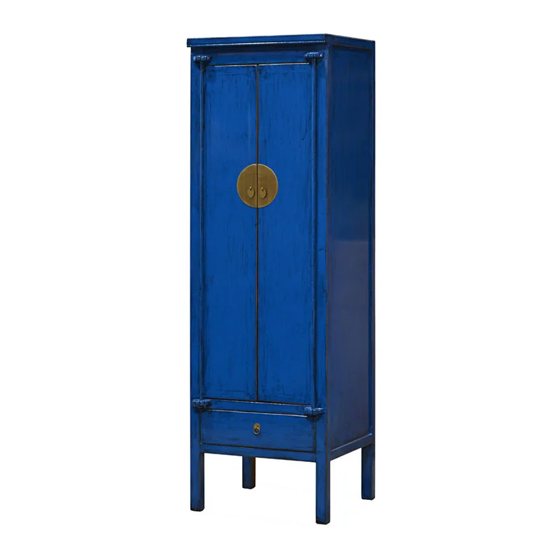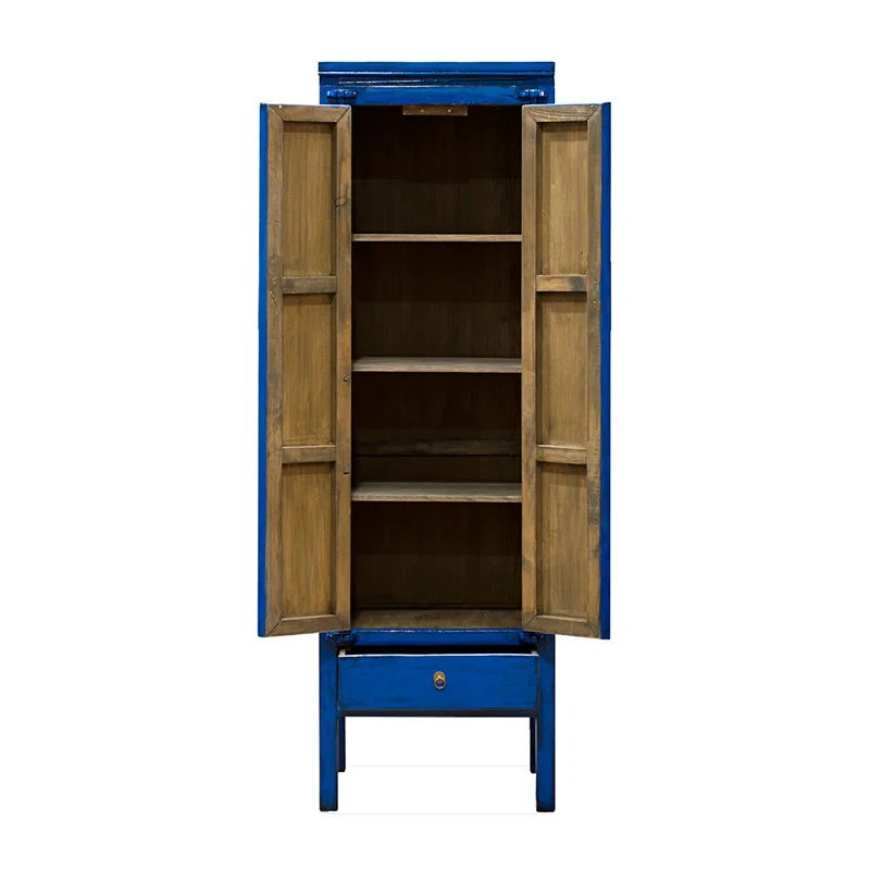 ساخت ، رنگ آمیزی و پتینه این کمد به صورت دستی ساخته و پردازش شده به همین دلیل شما همیشه یک محصول Limited و منحصر به فرد خریداری کرده اید . این کمدل با ظاهری شکیل و تزئینات کم، فلسفه زیبایی را از طریق سادگی در خود جای داده است. رنگ آبی با دستگیره های فلزی صیقلی به رنگ برنج تکمیل میشود.مطمئناً در هر کجا که قرار می گیرد بیانیه ای پر رنگ خواهد داشت .