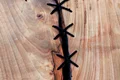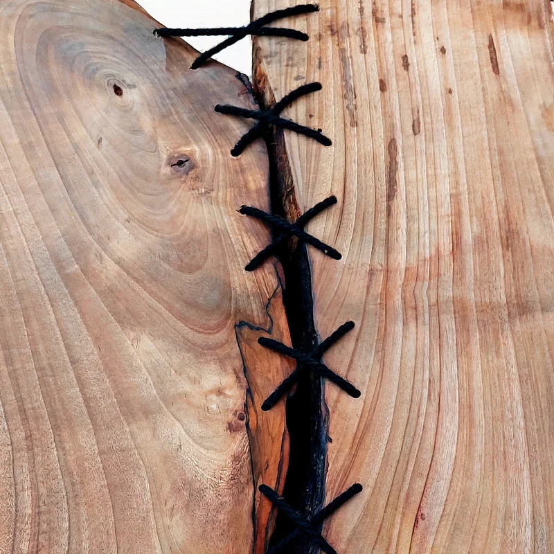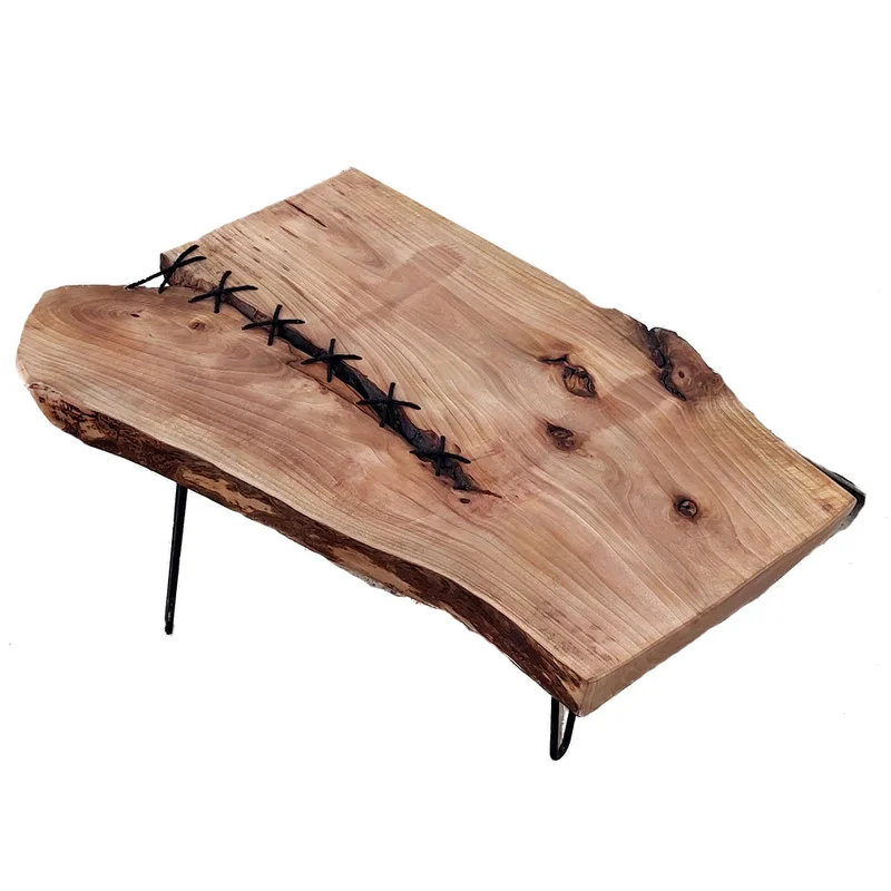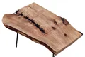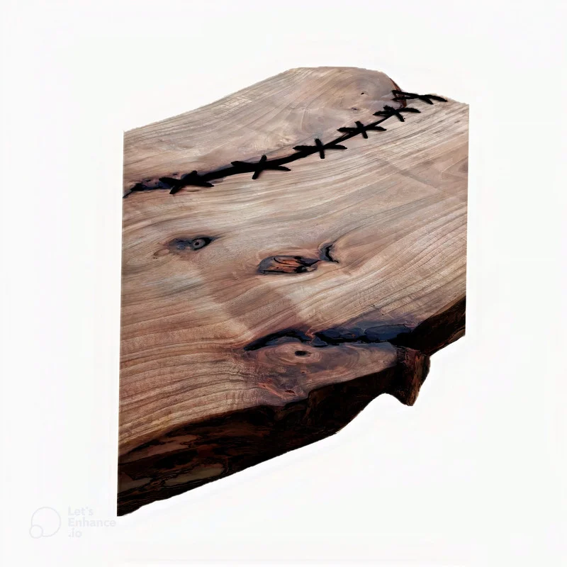 میز عسلی بزرگ روستیک ساخته شده از چوب گردو میباشد که سطح آن با پوشش روغن درجه 1 گیاهی پوشانده شده است. ضخامت چوب 6 سانتی متری میباشد که با طرح بخیه با کناف طراحی شده است. رنگ این میز قهوه ای روشن وکاملا طبیعی و ضد آب میباشد. میز دارای 3پایه ی فلزی مشکی رنگ کوره ای و طرح سنجاقی میباشد.