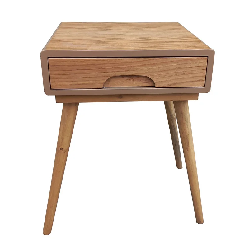 عسلی ریو مربع ام دی اف در ابعاد 45x45 با ارتفاع 63 سانتی متر باروکش بلوط به رنگ خودرنگ (رنگ طبیعی )با پایه چوبی و دستگیره مخفی و تک کشو زیبایی خانه ایرانی را دوچندان میکند