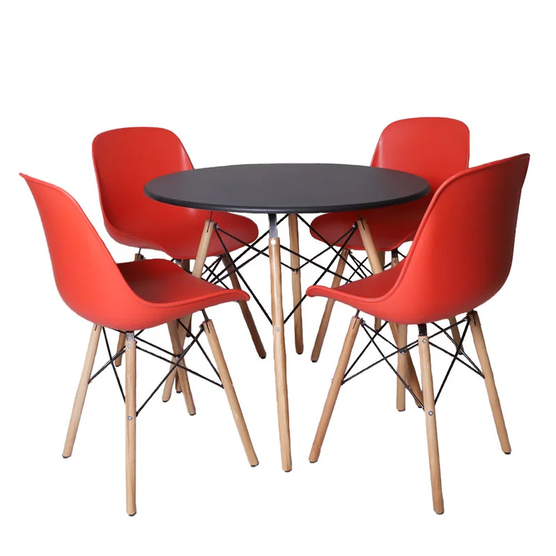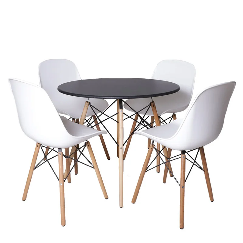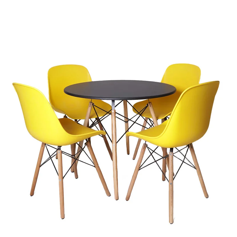میز و صندلی ناهار خوری 4 نفره پلیمری ساخته شده از موادپلیمری (پلی پروپیلن) کاملا نشکن میباشد پایه های چوبی این محصول که با اتصال فلز به یکدیگر رسیده اند باعث شده تا هم مقاومت بسیار بالایی در برابر وزن داشته باشند و هم زیبایی خاصی را ایجاد کرده